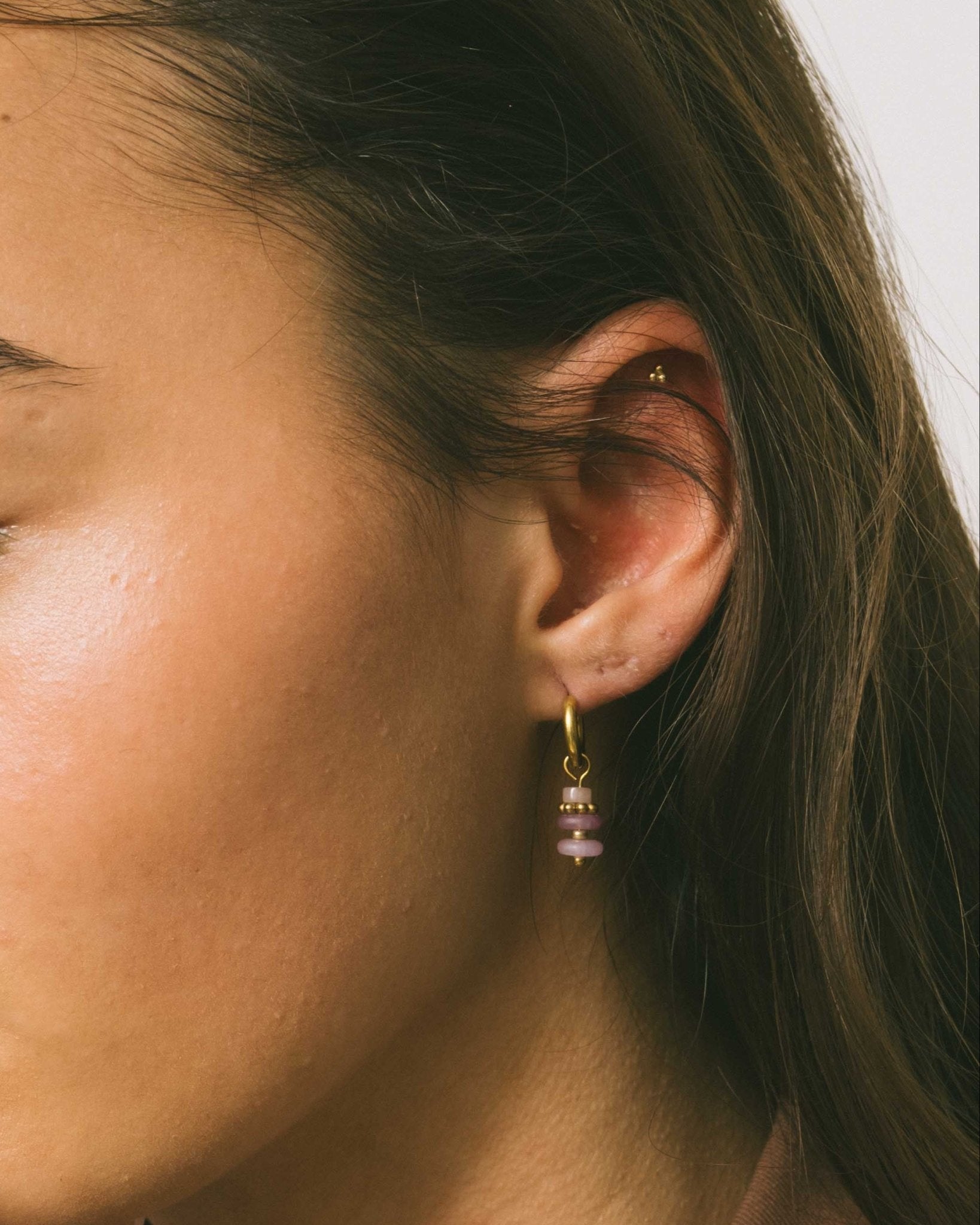 These earrings, featuring soft pink beads and gold details, add a subtle, playful touch to your look. Delicate, feminine, and perfect for everyday wear.