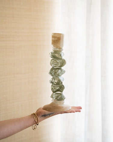 Create a cozy atmosphere in your home with the Estina Glass Candle Holder, available in small and medium. This elegant green glass candle holder combines playful shapes with a luxurious look. Perfect as a statement piece on a table, sideboard, or windowsill, it's easy to combine with other home accessories.