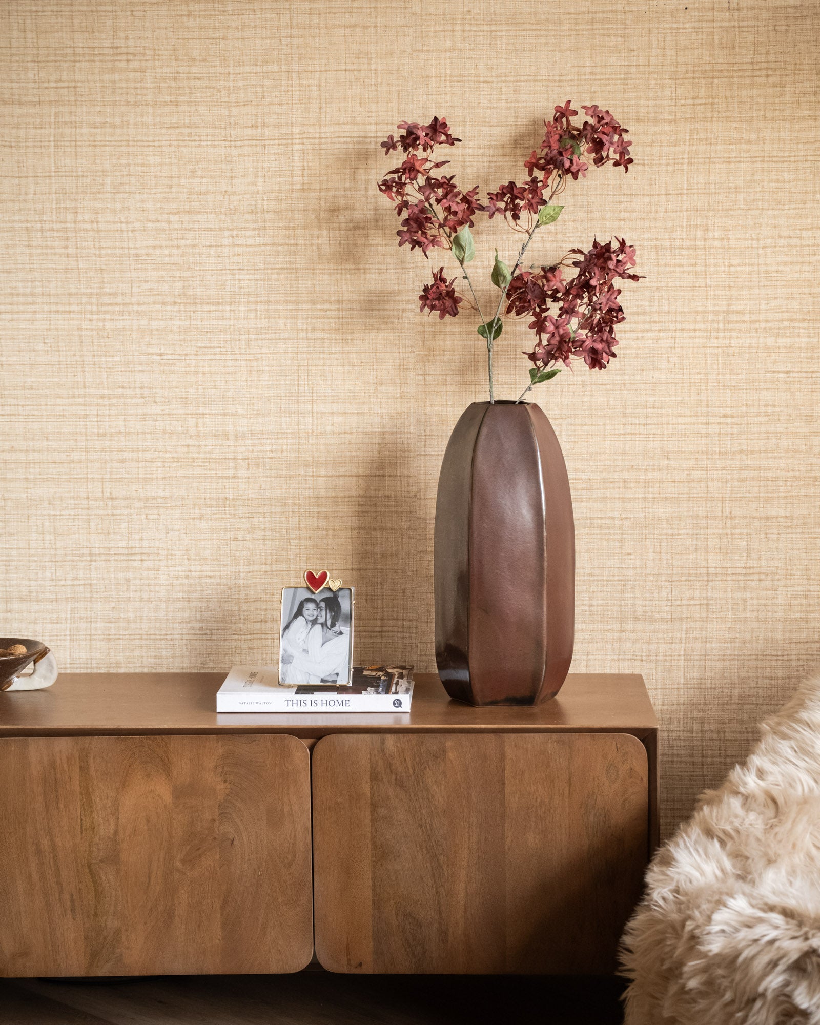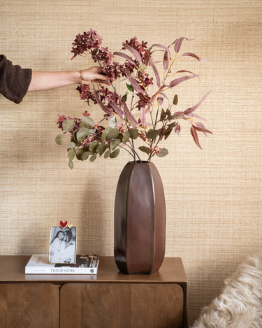 Add warm, natural elegance to your interior with the Deco Vase Serra Burgundy. This ceramic vase in a deep burgundy shade has a unique, organic shape that perfectly complements modern and stylish living spaces. Use it as a statement piece with a single branch or flower, or let it shine solo as a timeless decoration.