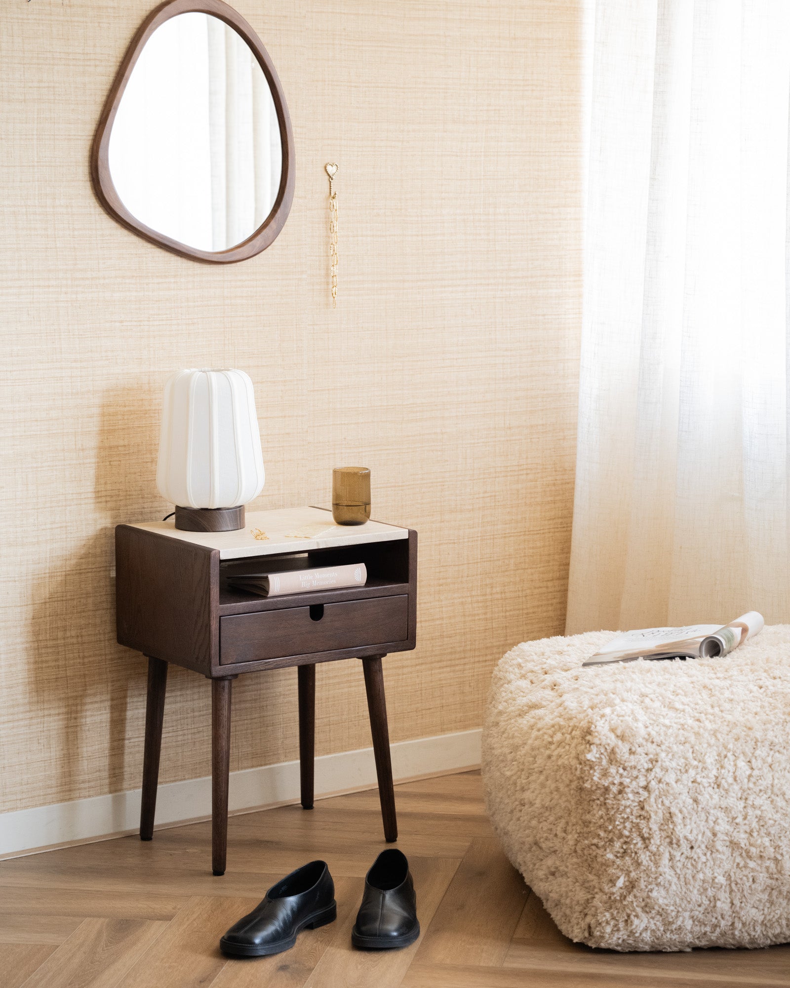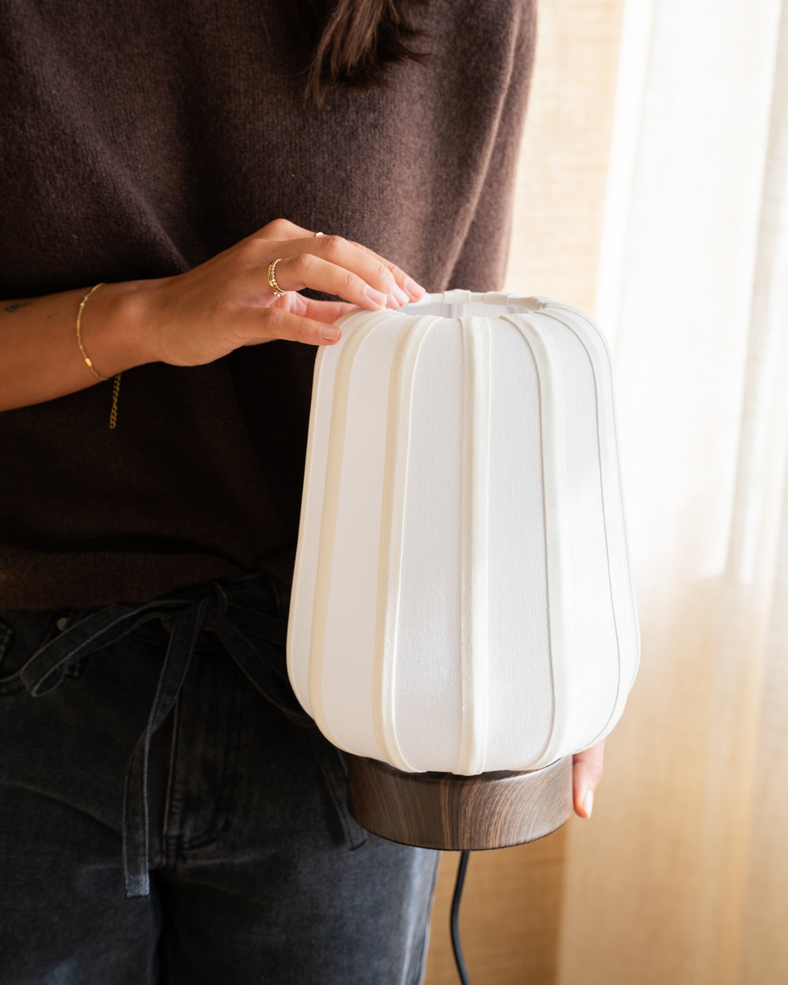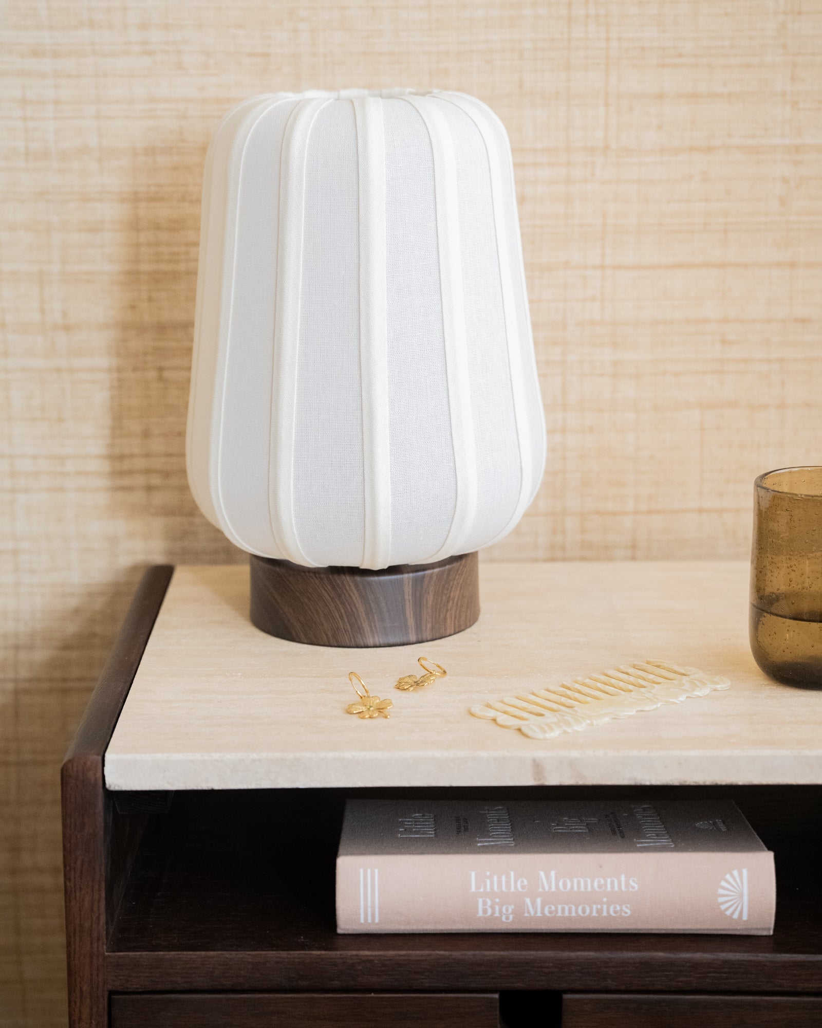The Bibury Table Lamp combines a soft textile shade with an elegant wooden base for a timeless look. The warm, diffused light instantly creates ambiance in any room. Perfect for your bedside table, dresser, or side table as a stylish eye-catcher.