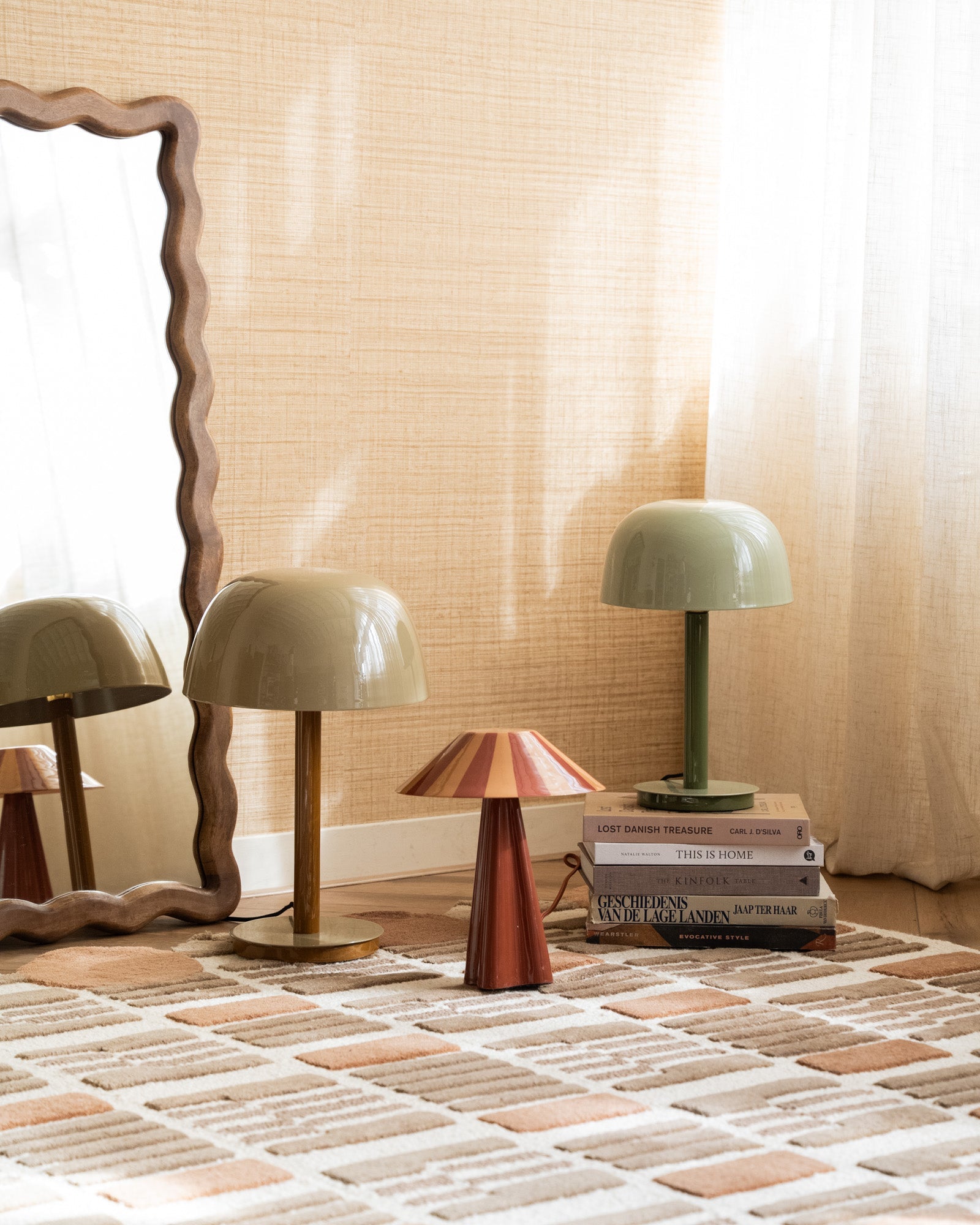 Bring ambiance and style into your home with the Marivet Green Table Lamp. The mushroom-shaped design and soft green color give this table lamp a retro vibe with a modern twist. Perfect as a nightlight, desk lamp, or eye-catching piece in the living room.