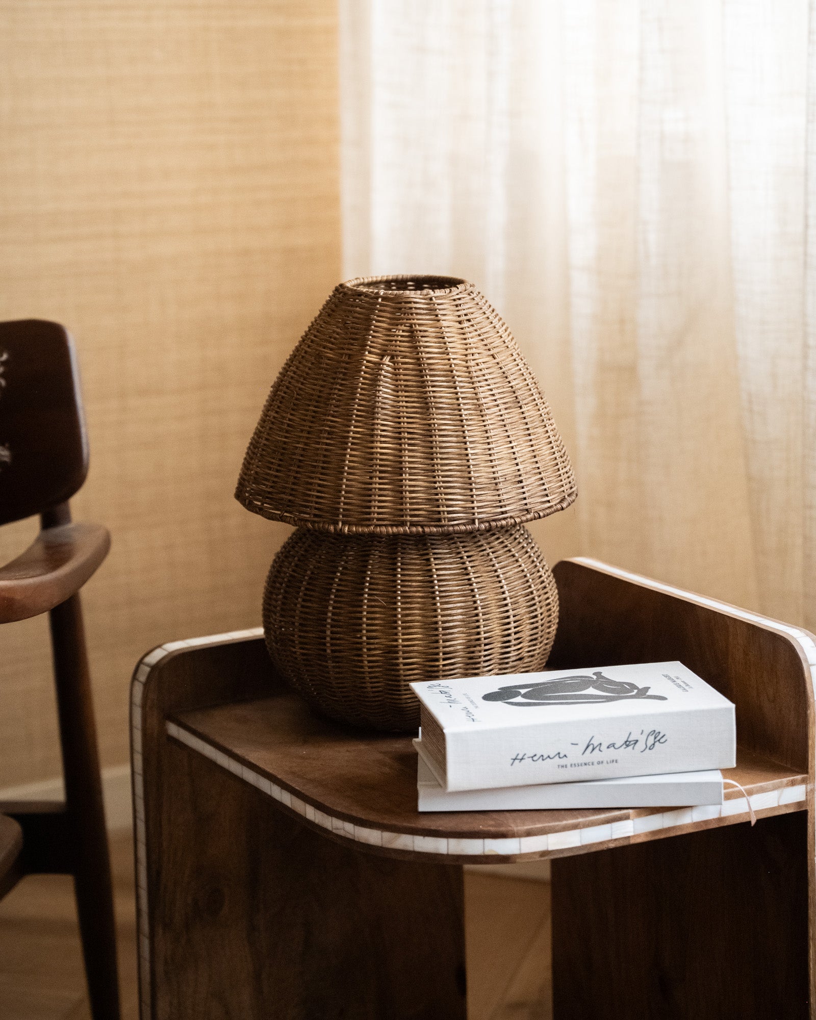 The Mavon Rattan Table Lamp instantly brings warmth and ambiance to your home thanks to its natural rattan and playful, organic design. The table lamp casts a soft, diffused light and is perfect for a side table, dresser, or nightstand. A stylish blend of boho and Japandi that fits effortlessly into a calm, natural interior.