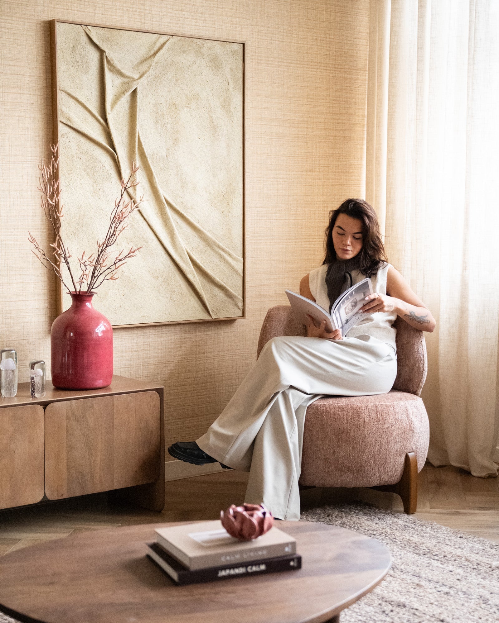 The X-Large Wall Art Nora Sand is an impressive wall object that brings peace and depth to your interior. The soft sand color and subtle relief give this large wall art an organic, almost sculptural look. Perfect for above the sofa, in the hallway, or as a statement piece in the bedroom. A stylish eye-catcher that fits effortlessly into a modern, Japandi, or natural interior.
