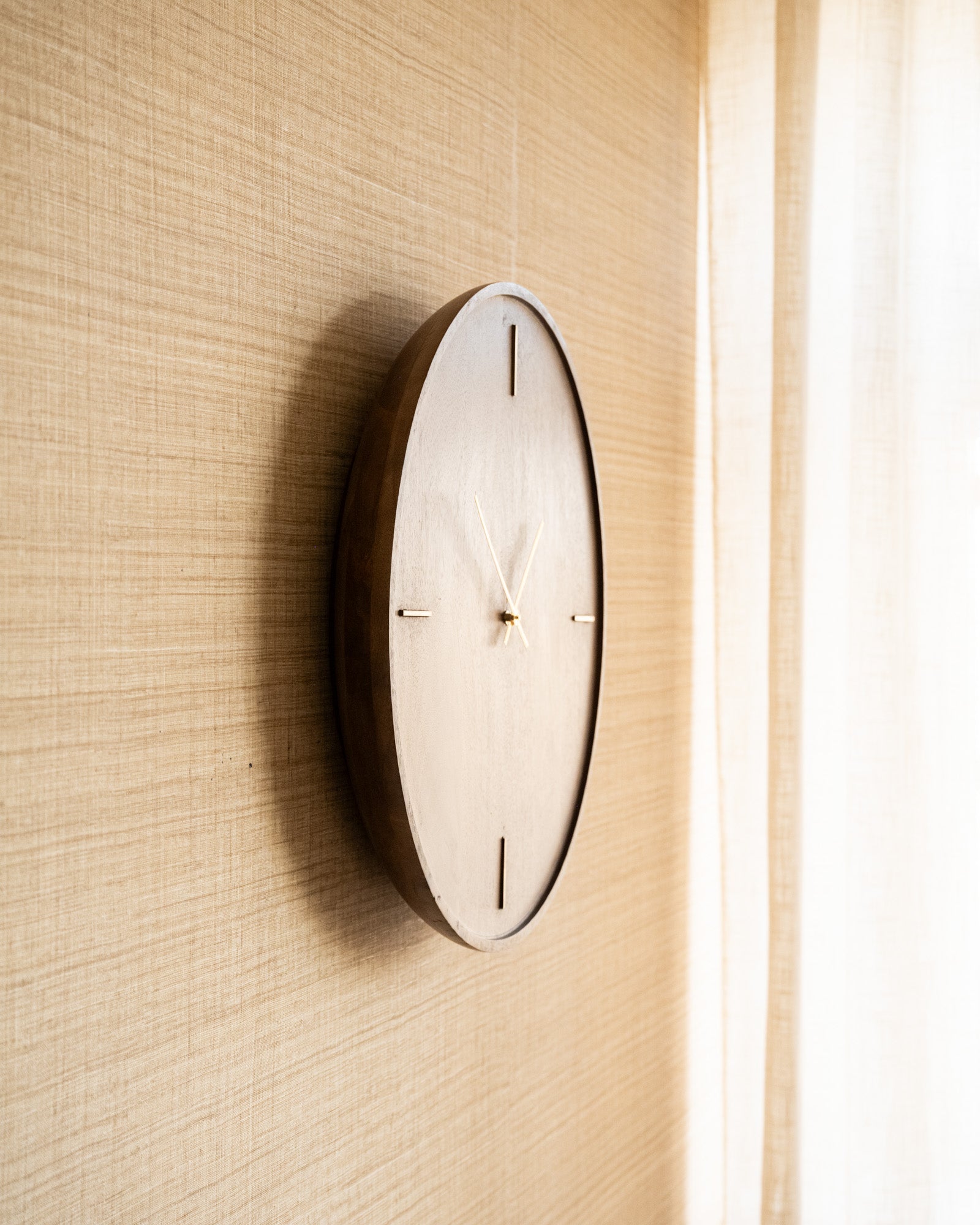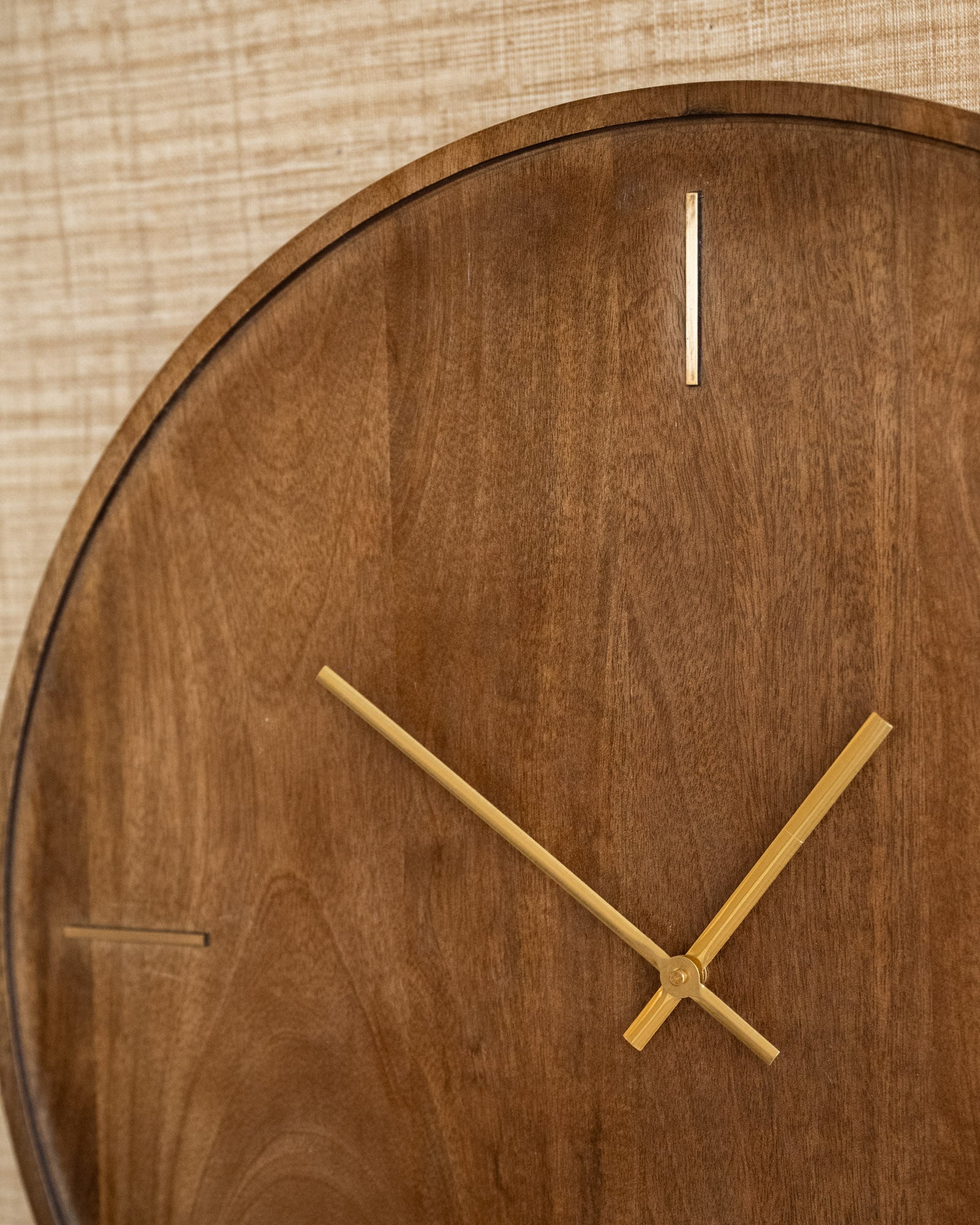 The X-Large Wall Clock Veti Wood Mango is a real eye-catcher on the wall. The warm mango wood and minimalist hands give the clock a calm, natural look with a modern edge. Perfect for above the sofa, in the dining room or in an open hallway where it immediately adds atmosphere and character.