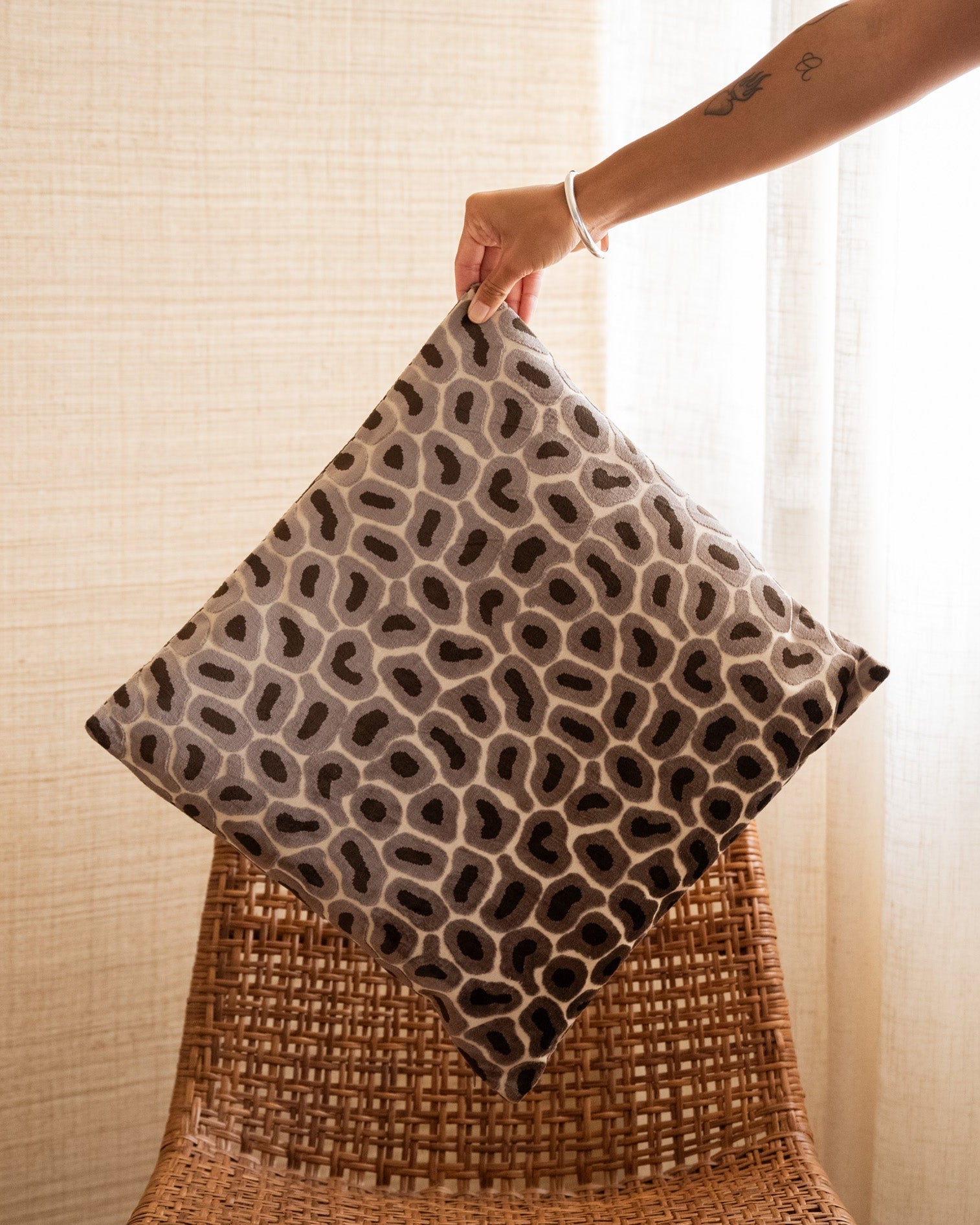 Add a touch of luxury to your interior with Cushion Mirelle Taupe. The soft velvet with an organic pattern in taupe and dark brown instantly gives your sofa or chair a stylish, modern look. Perfect for combining ambiance and comfort.