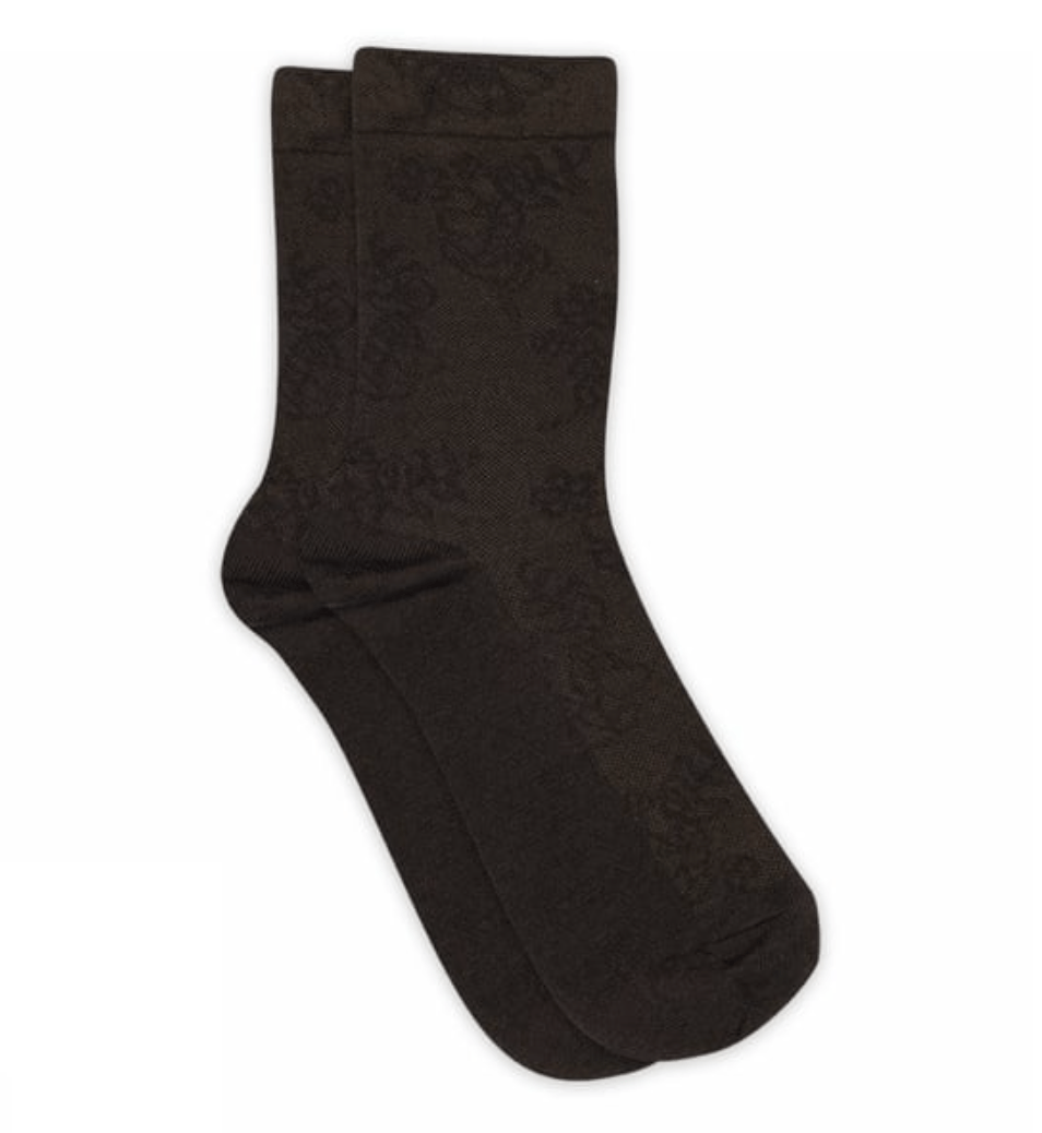 A subtle yet stylish addition to your outfit! These dark brown socks feature a delicate woven floral pattern that adds just that little bit extra.