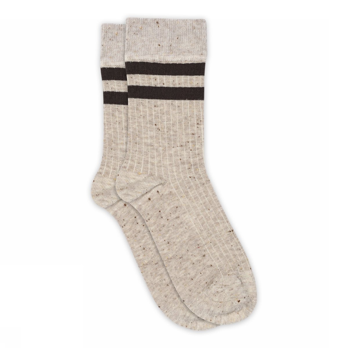 Beautiful, multi-colored studded socks in a soft bamboo viscose blend with silk, from MPwoman. The socks have a ribbed look and two wide horizontal stripes on the shaft.