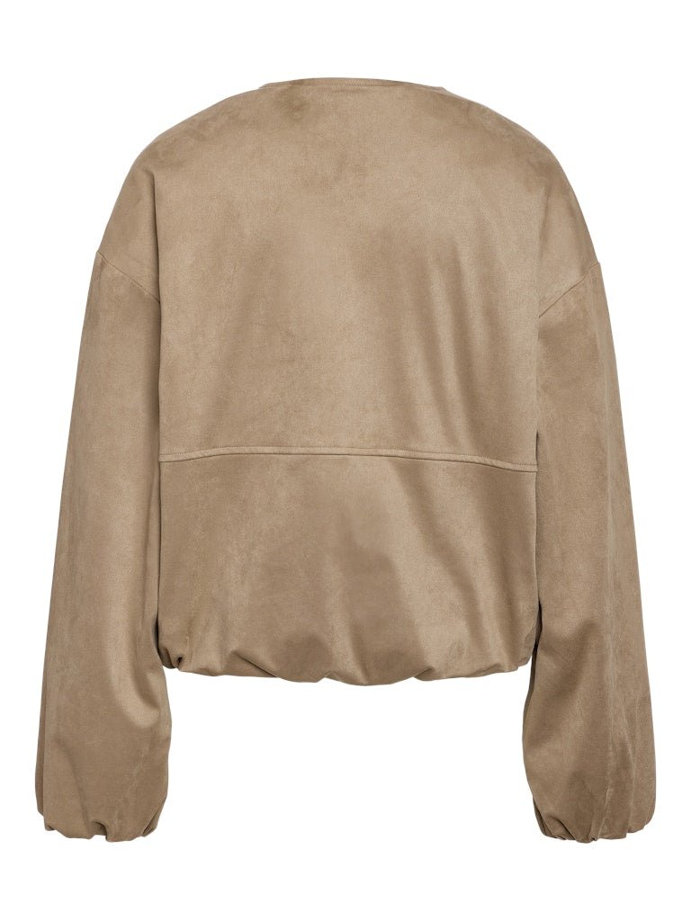 Trendy jacket with a soft suede look and a modern cropped fit. Perfect for adding a stylish and edgy touch to your outfit.