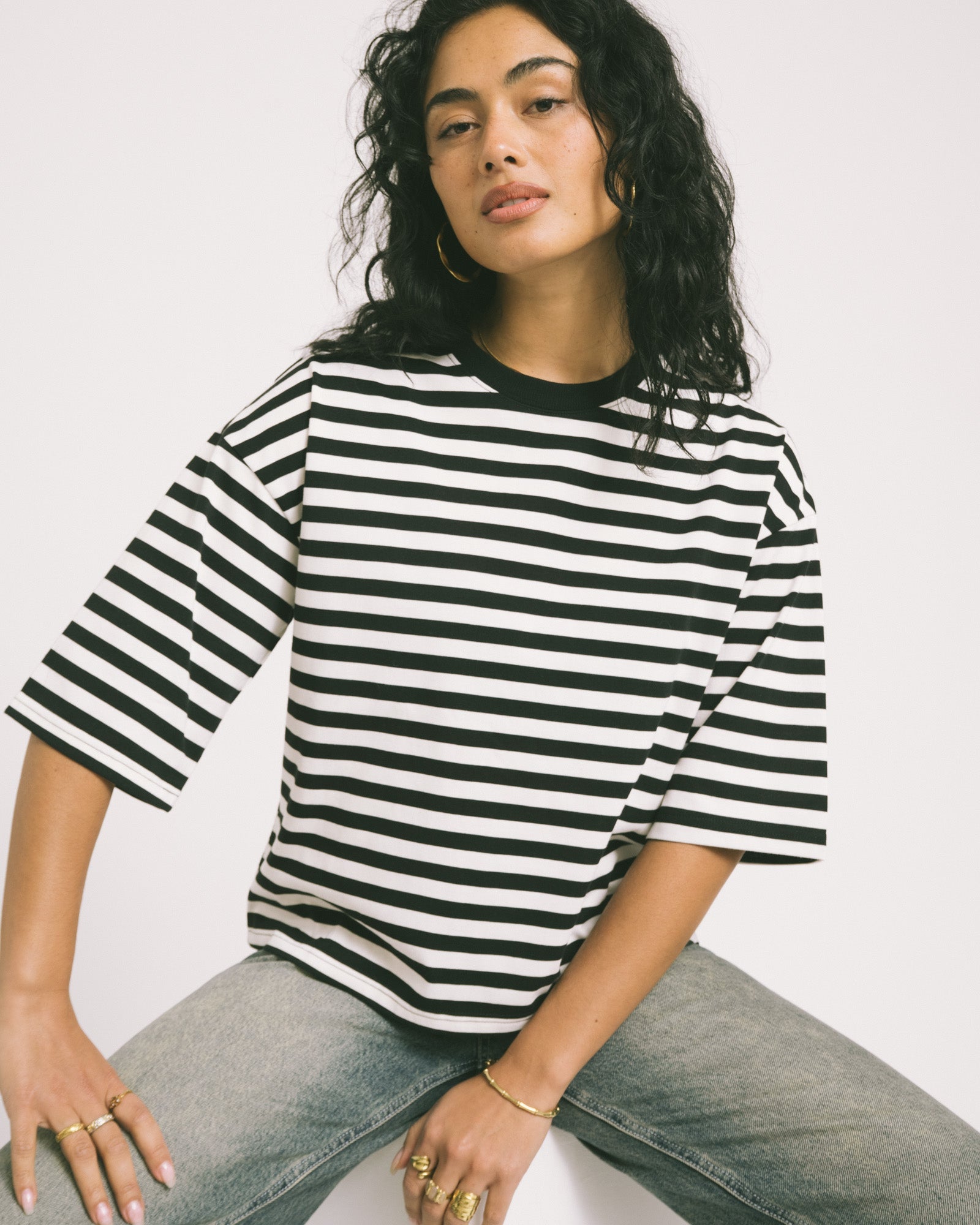 Stripe it simple. The Ember Stripe Sweat is a striped T-shirt with a boxy fit for a relaxed, effortless look. An easy essential that you can style endlessly, from casual to cool.