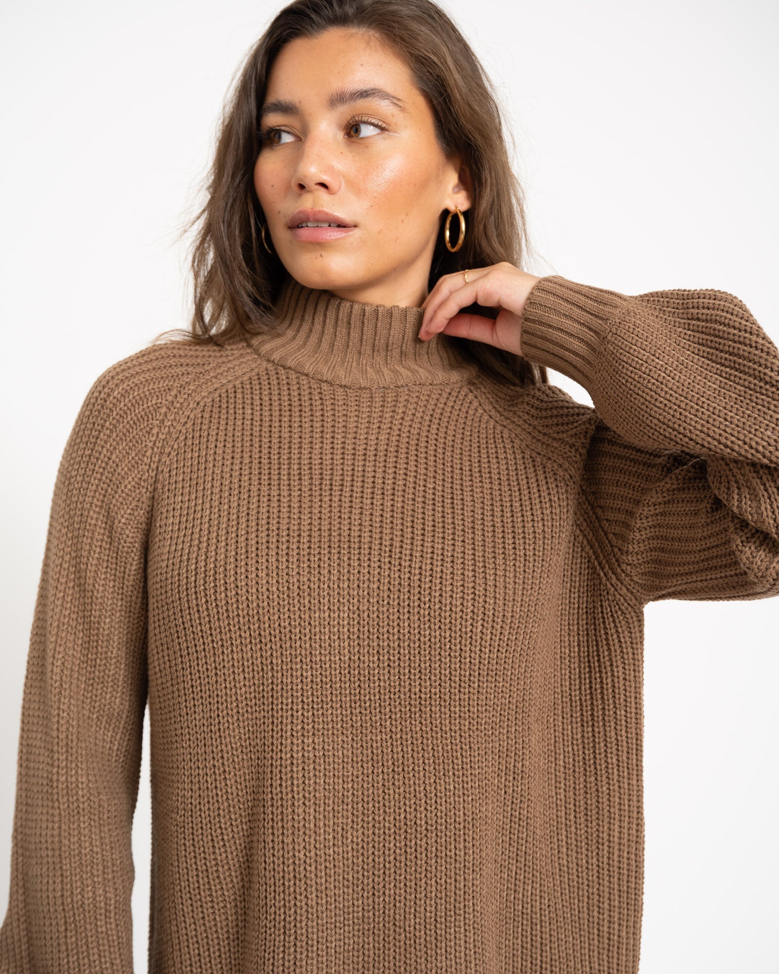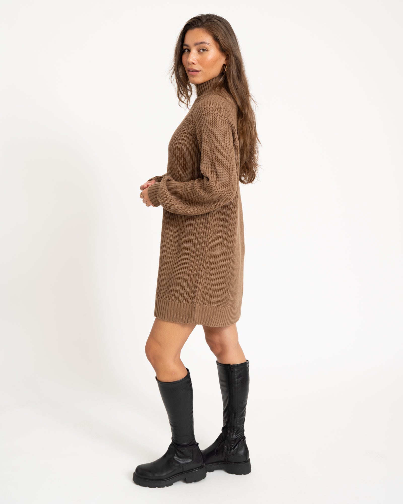 The comfort of a knitted dress! A loose-fitting dress with a high collar.