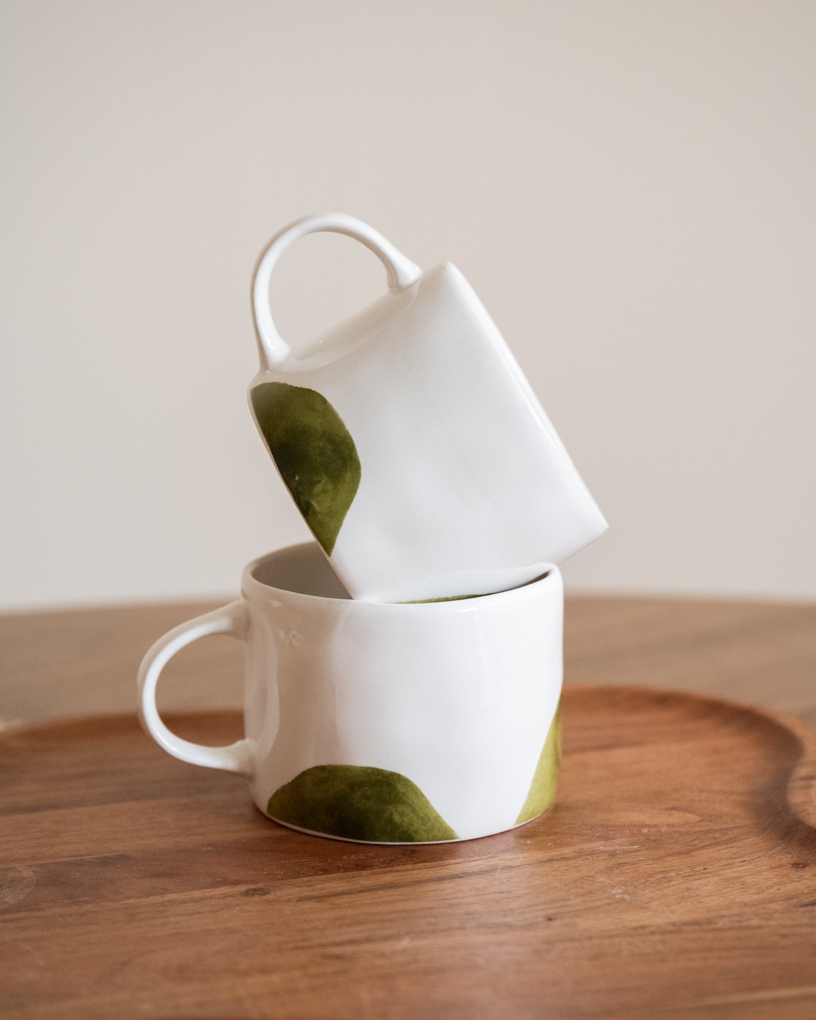 Cappuccino Mug Labo Olive Green brings a playful twist to your coffee break. This porcelain mug features a hand-painted look with capsule-shaped patterns in a warm olive green hue, inspired by a modern laboratory design. Perfect for cappuccino, flat white, or a large coffee, it makes a stylish addition to your tableware collection.