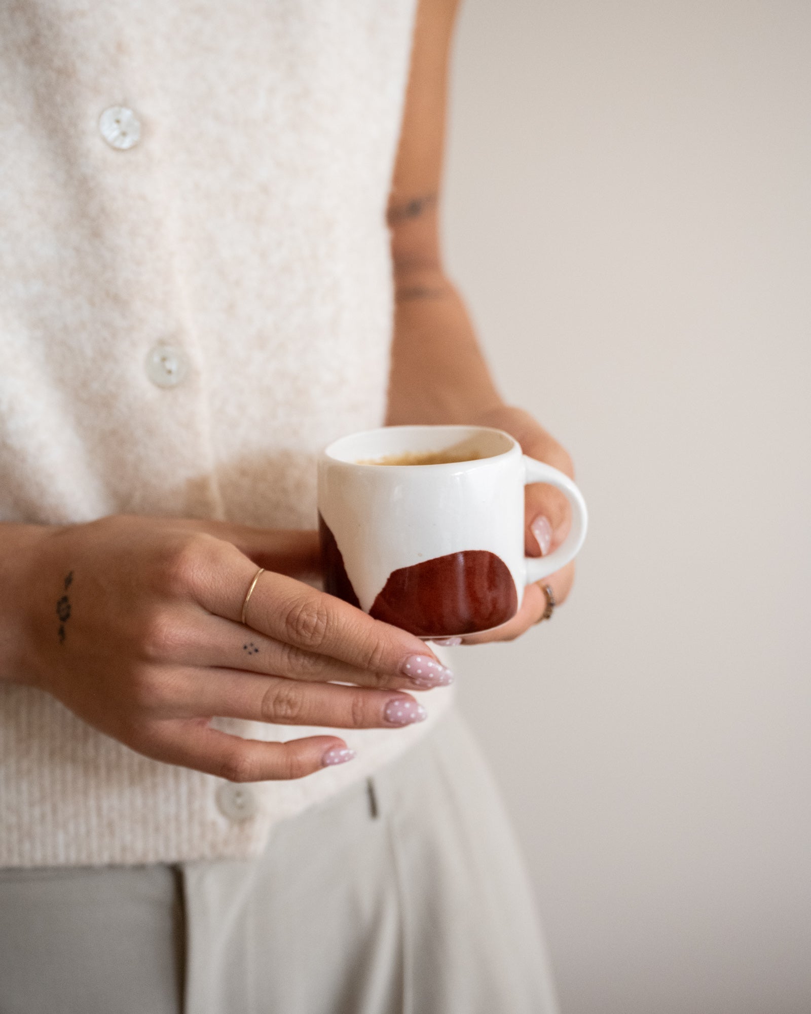 The Coffee Mug Labo Rust is a stylish porcelain coffee mug with a playful, rust-colored finish. Inspired by modern laboratory shapes, the design features a hand-painted look that adds a creative, contemporary touch to any coffee moment. Perfect for a lungo or a double espresso.