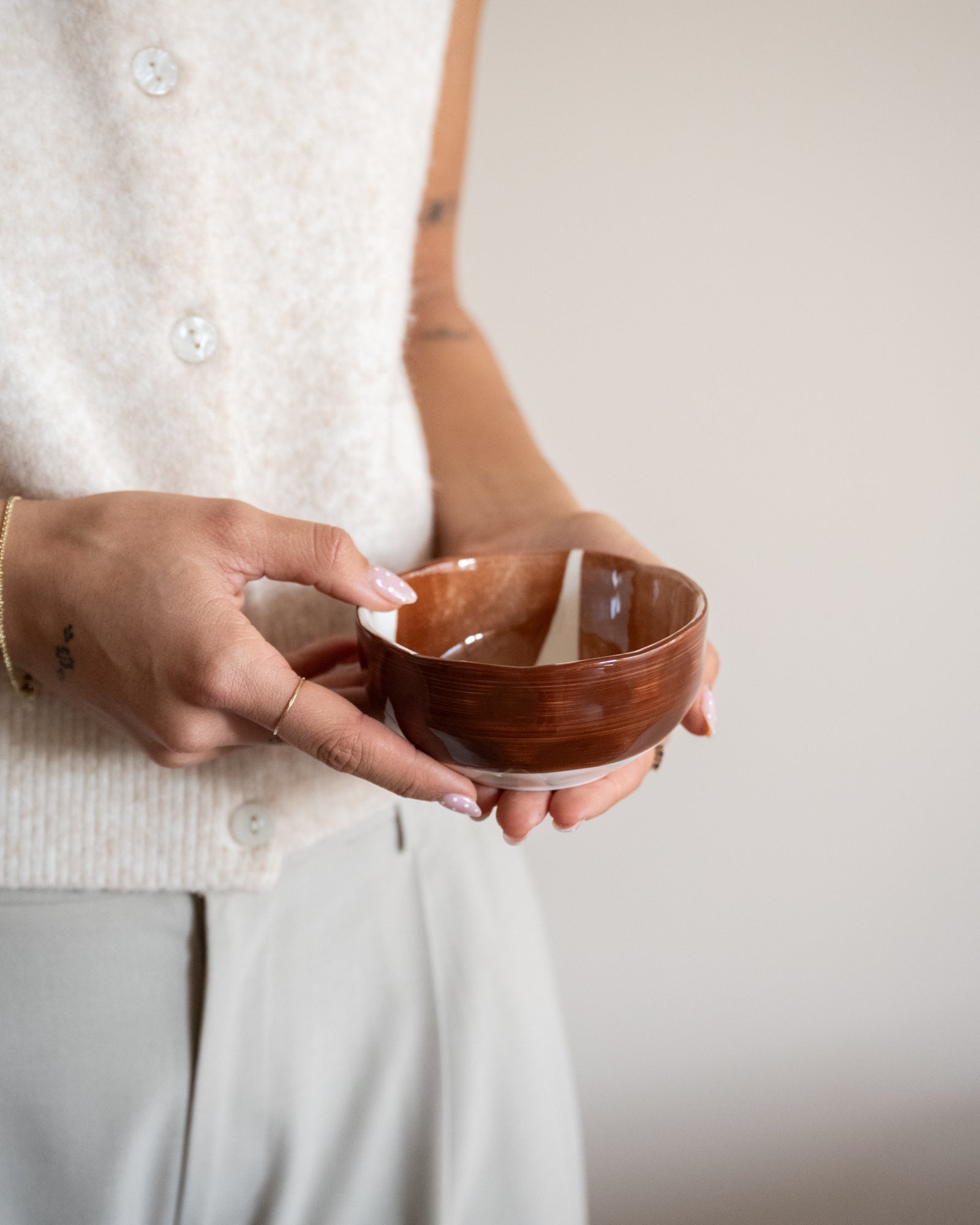 Bowl Labo Rust – Small is a compact porcelain bowl with a playful, rust-colored finish. Inspired by the sleek shapes and atmosphere of a modern laboratory, the hand-painted finish gives it a creative, almost experimental feel. Perfect for appetizers, nuts, fruit, or small snacks.