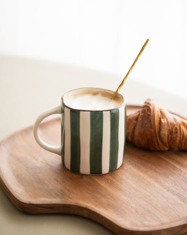Start your day with a touch of Mykonos. The deep green hues and playful stripes add a touch of Greek elegance to your coffee break. Perfect for your morning coffee or tea, but also simply as a stylish eye-catcher on your shelf.