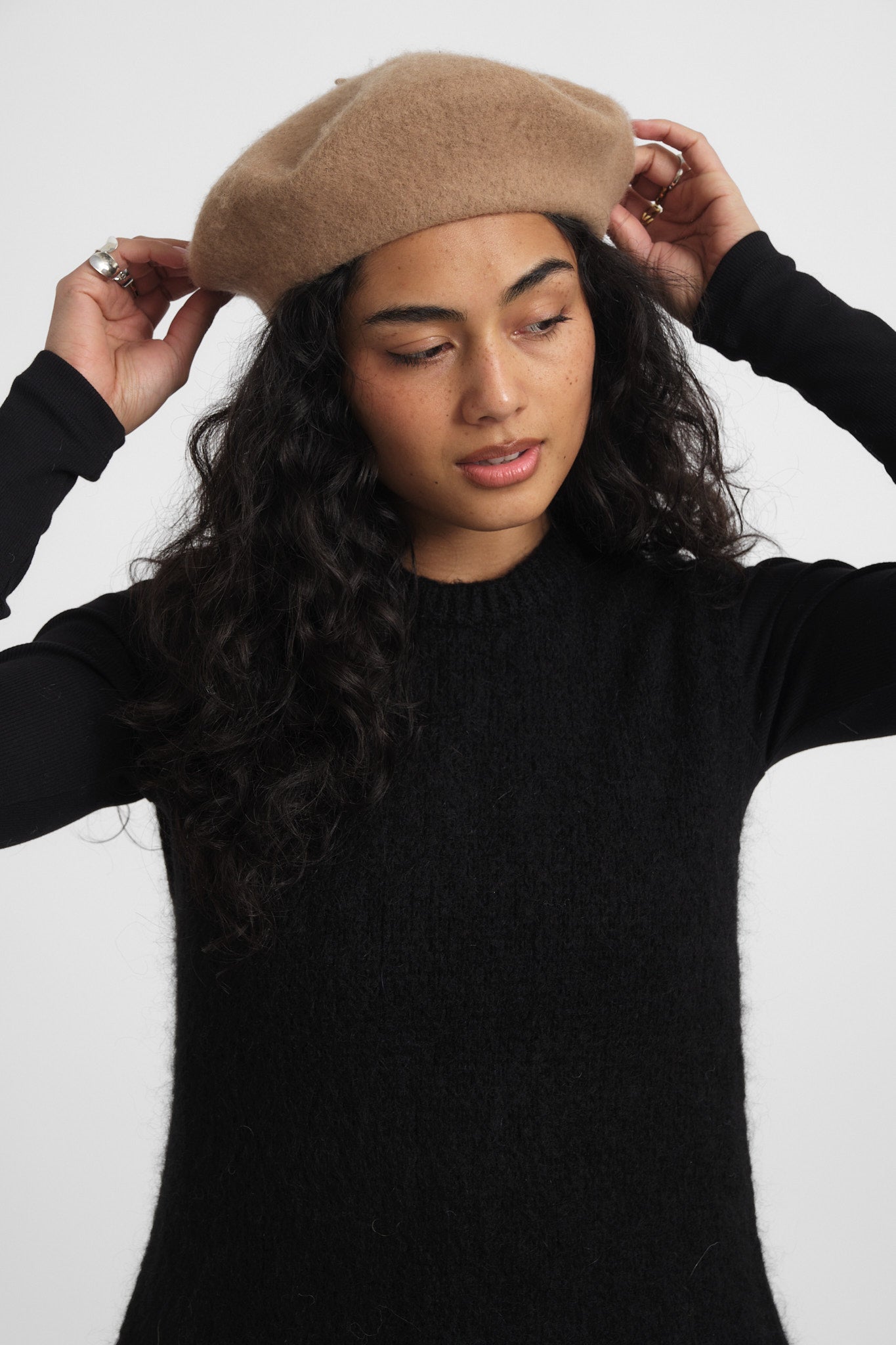 This camel beret adds instant elegance to your look. With its soft material and timeless look, it's the perfect finishing touch for any season.