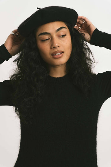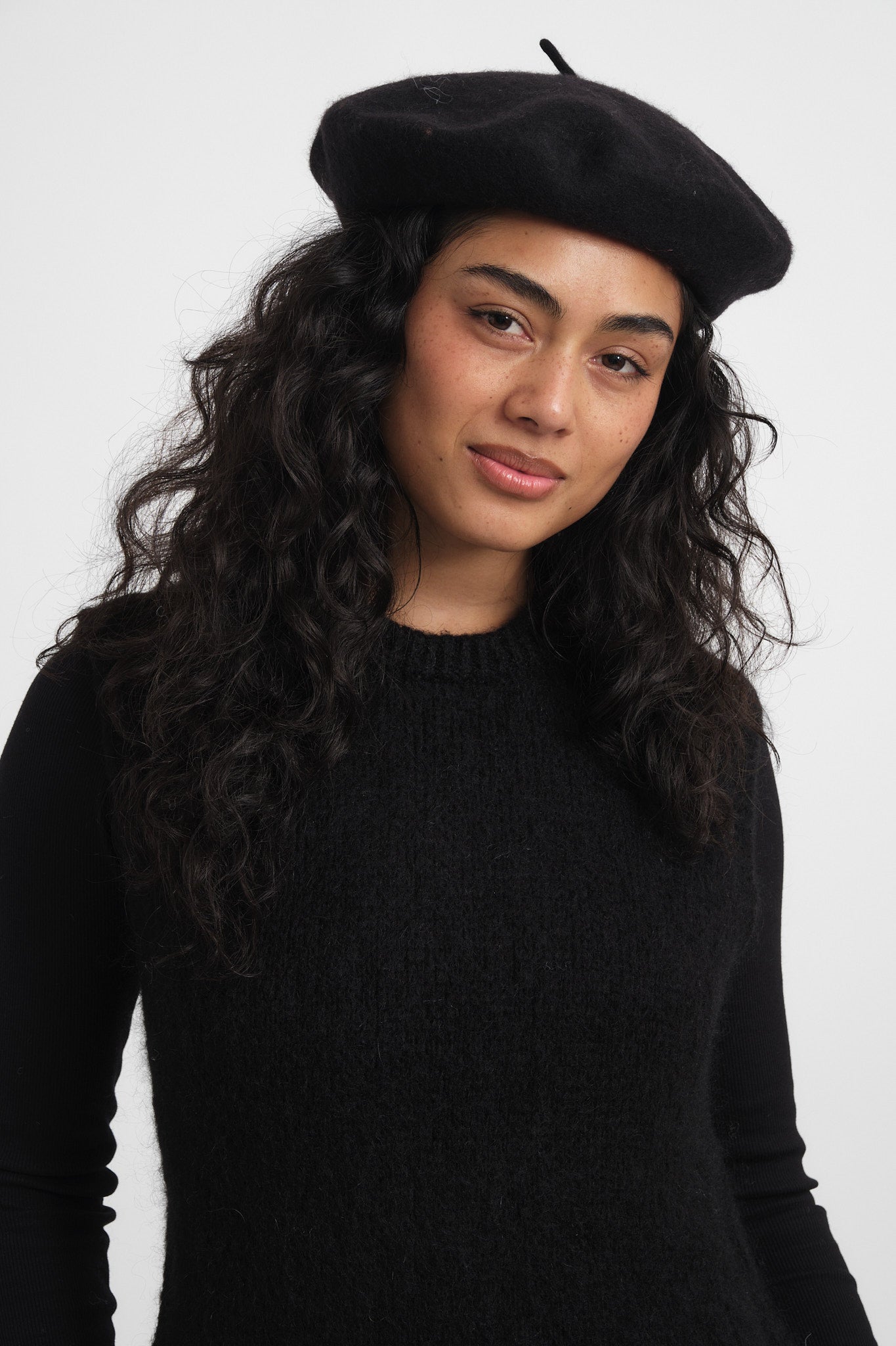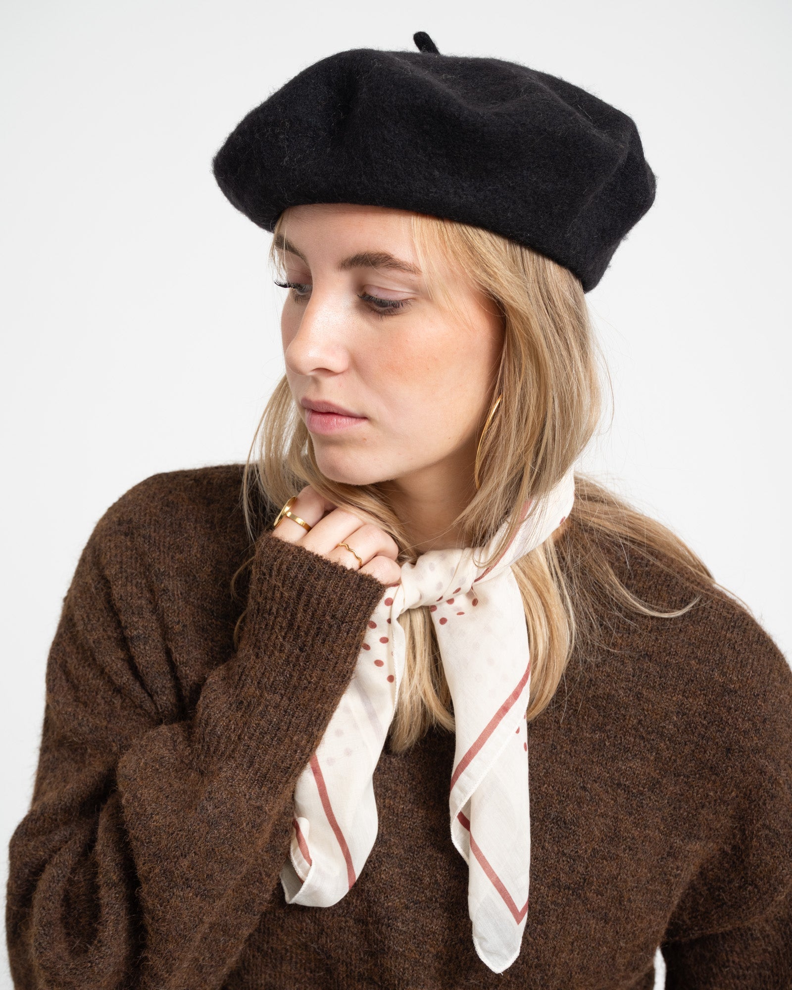 The black beret is a true classic: stylish, versatile, and effortlessly chic. A must-have accessory that adds an elegant finishing touch to any outfit.