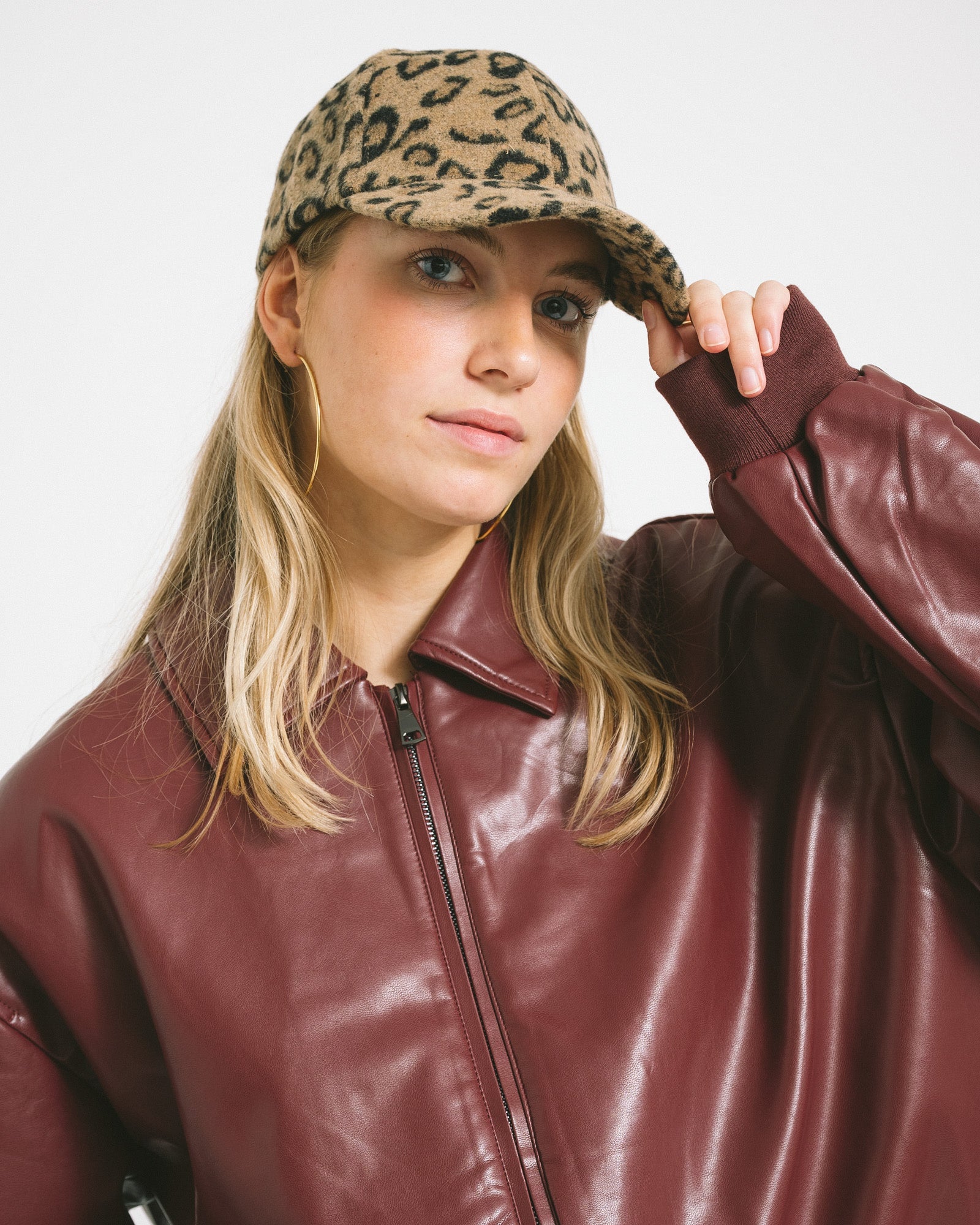 This leopard cap is the perfect finishing touch to any outfit. Add a touch of edge to your look and pair it with casual jeans or a rugged leather jacket.