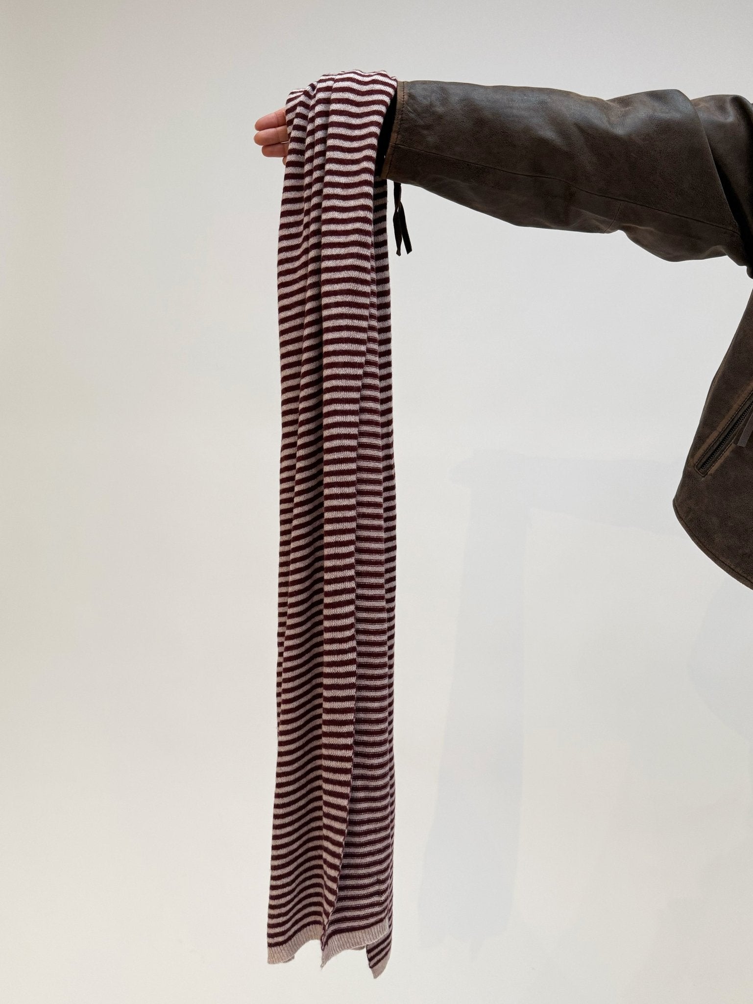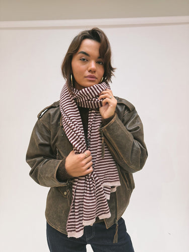 Super soft striped scarf, made from Greencash yarn Eco Cashmere.