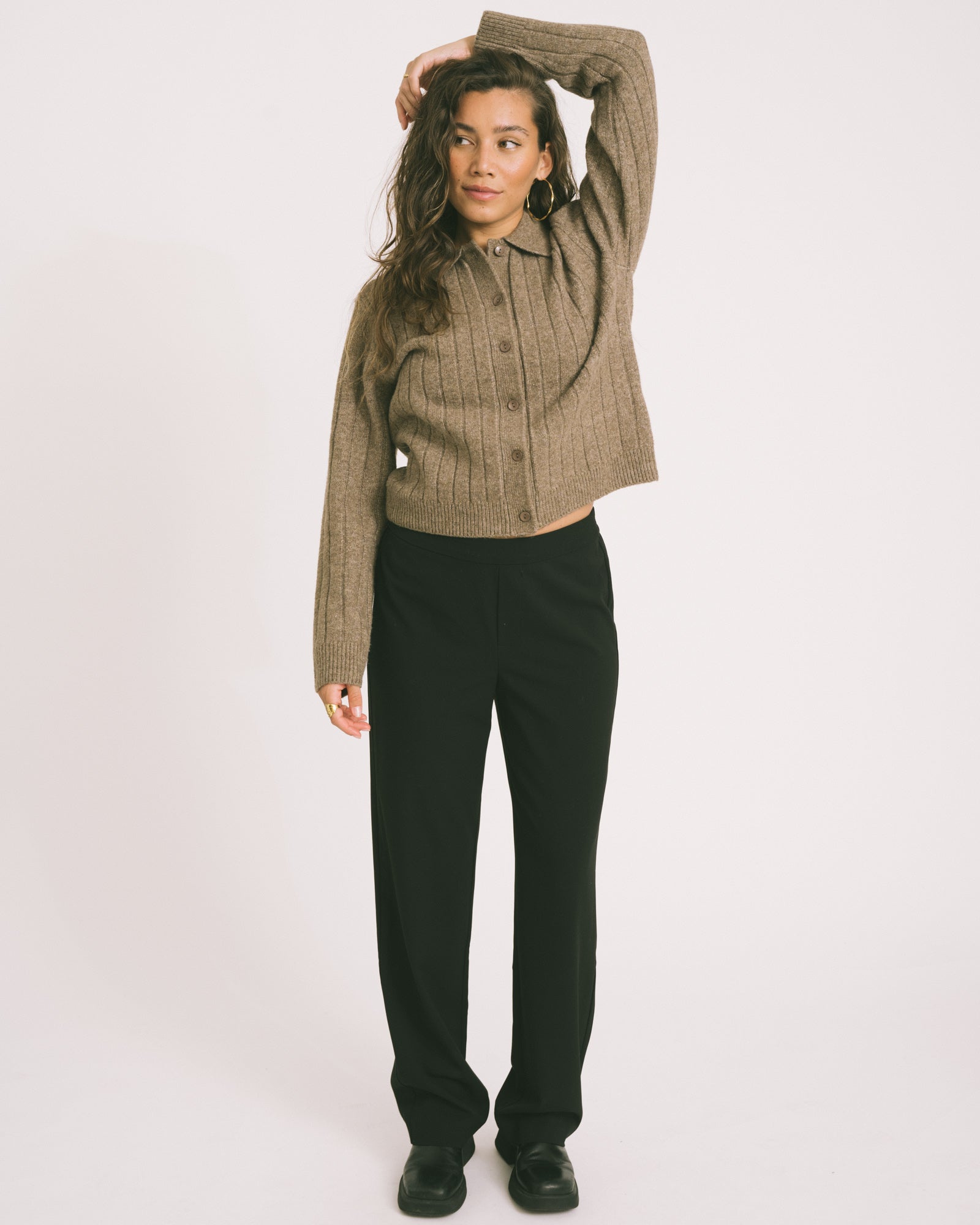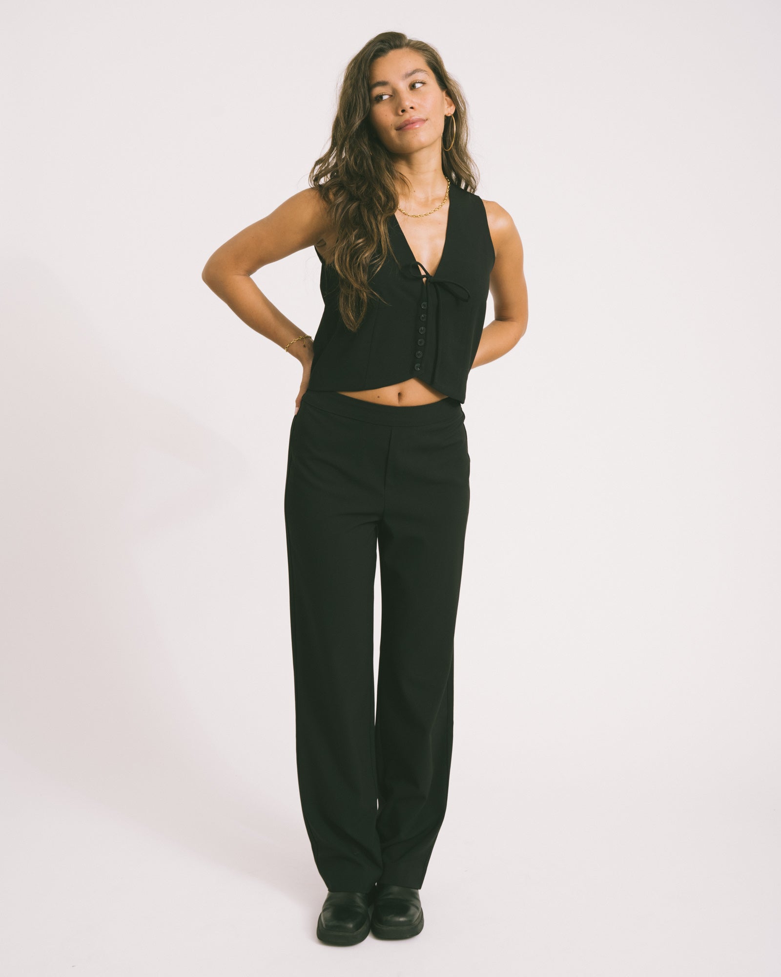 The Dana Pantalon is one of those basics that you can wear endlessly. With an elastic waistband and straight leg fit, it not only fits comfortably, but also looks good. Wear it with a blazer for a classic look or combine it with a colorful top for something a little more fun. An easy go-to pair of pants for every day.