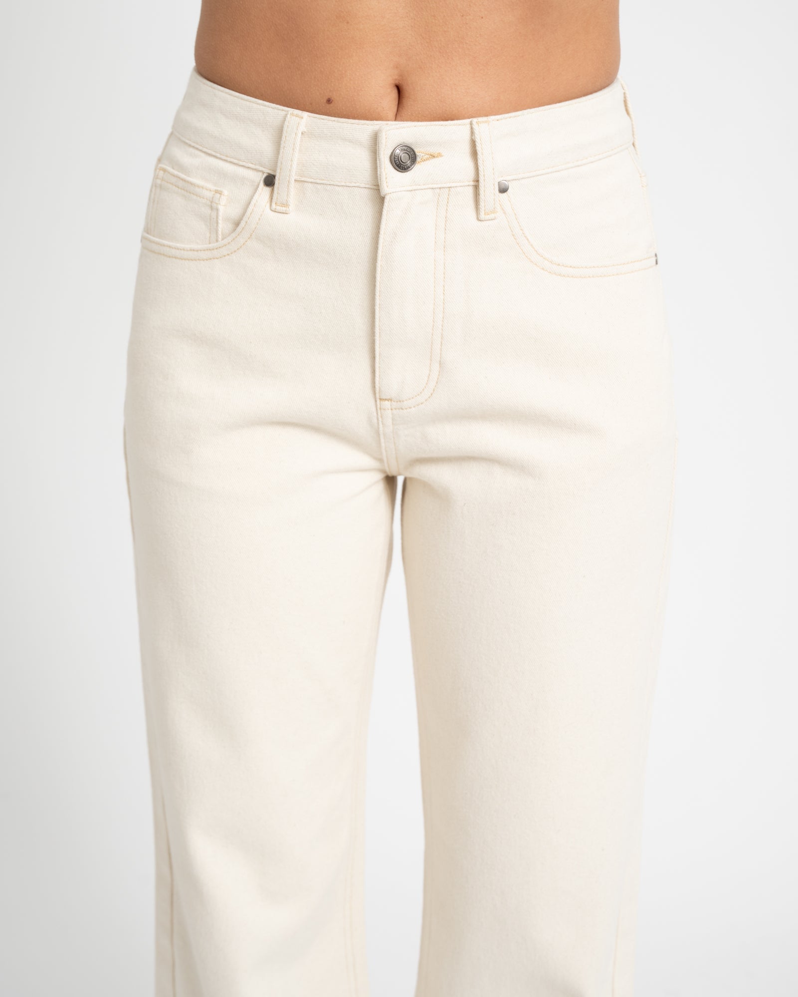 Deze Dide jeans heeft een relaxed, recht silhouet. De off-white kleur geeft een frisse, tijdloze uitstraling en is verkrijgbaar in meerdere kleuren. 🤍