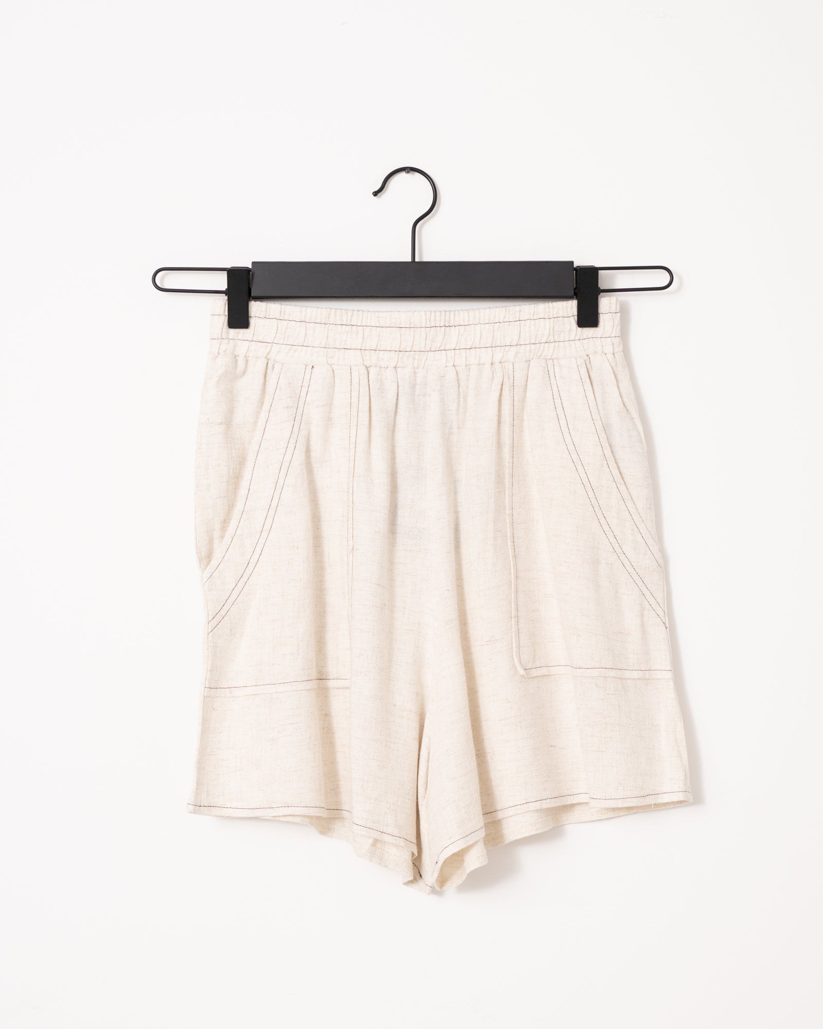 Linen shorts are our go-to this summer! These airy, loose-fitting shorts feature an elastic waistband and pockets.