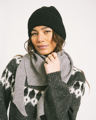 A black beanie that feels as comfy as it looks, your go-to on cold days.