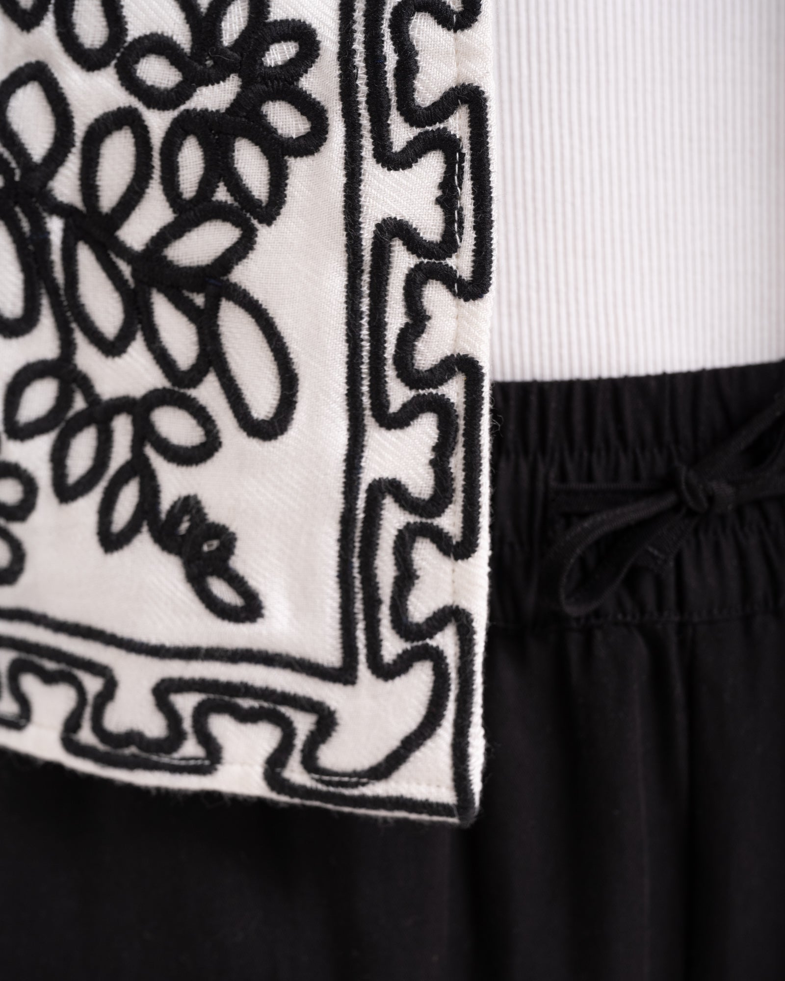 White vest with black embroidery pattern and a lined interior for extra comfort. The neutral tones make it easy to combine with all kinds of colours and styles. Also available in the colour rust.