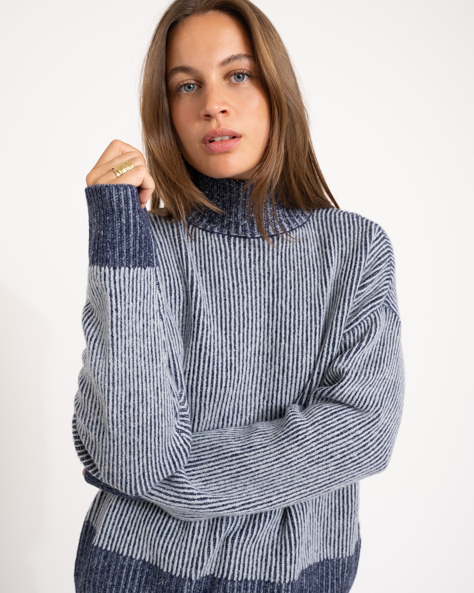 TILTIL Jackie Contrasted Mockneck Pullover Blue