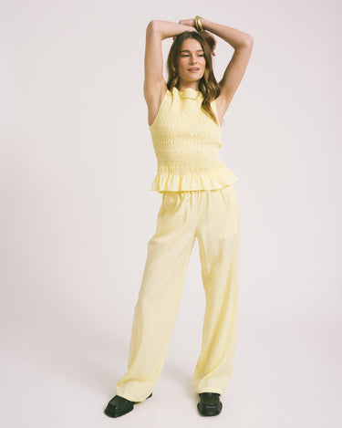 The smocked body creates a comfortable, close fit, while the subtle peplum hem adds an elegant touch. Made of supple Tencel for a soft feel and airy comfort.