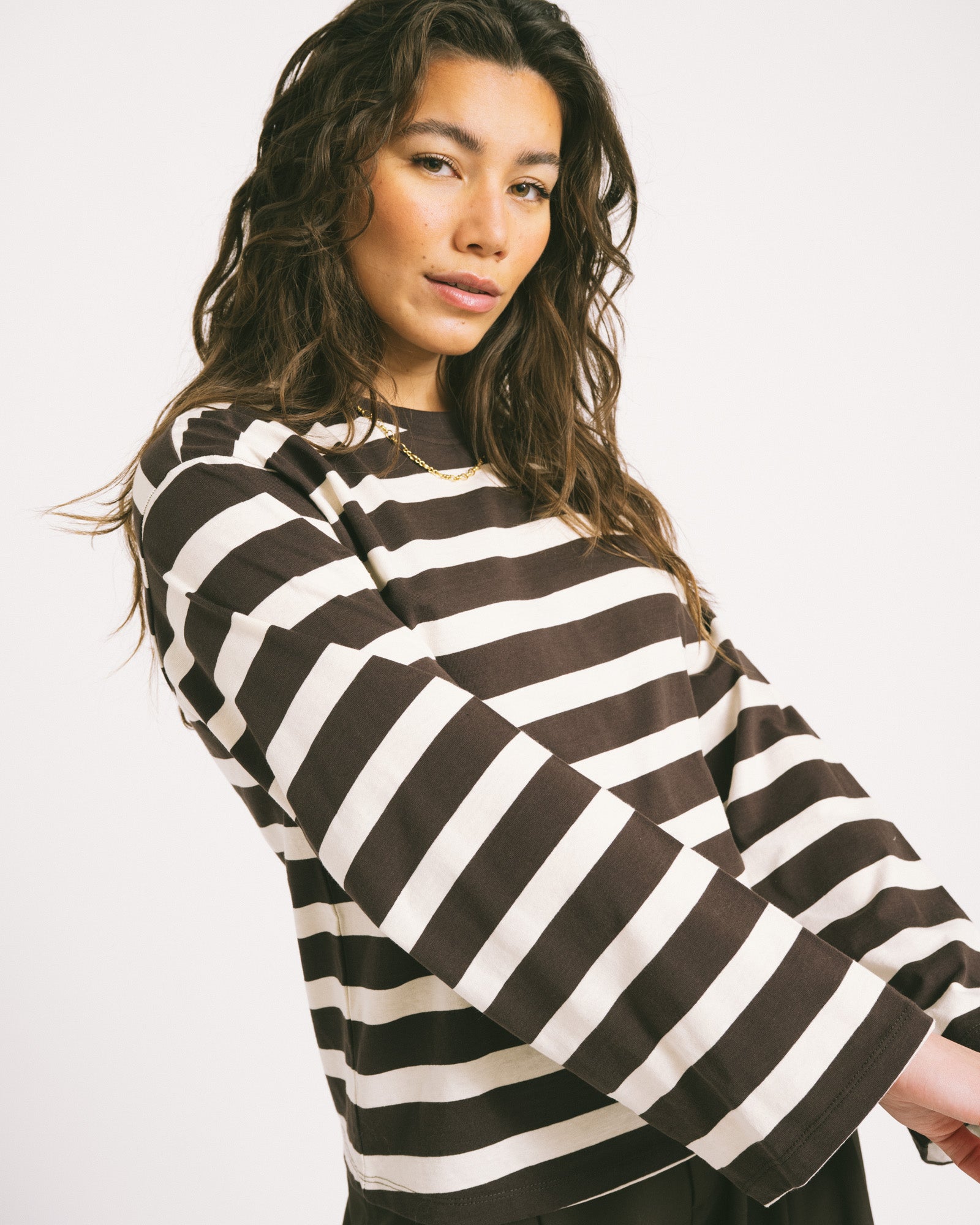 TILTIL Longsleeve Thick Striped Doka Tee Brown