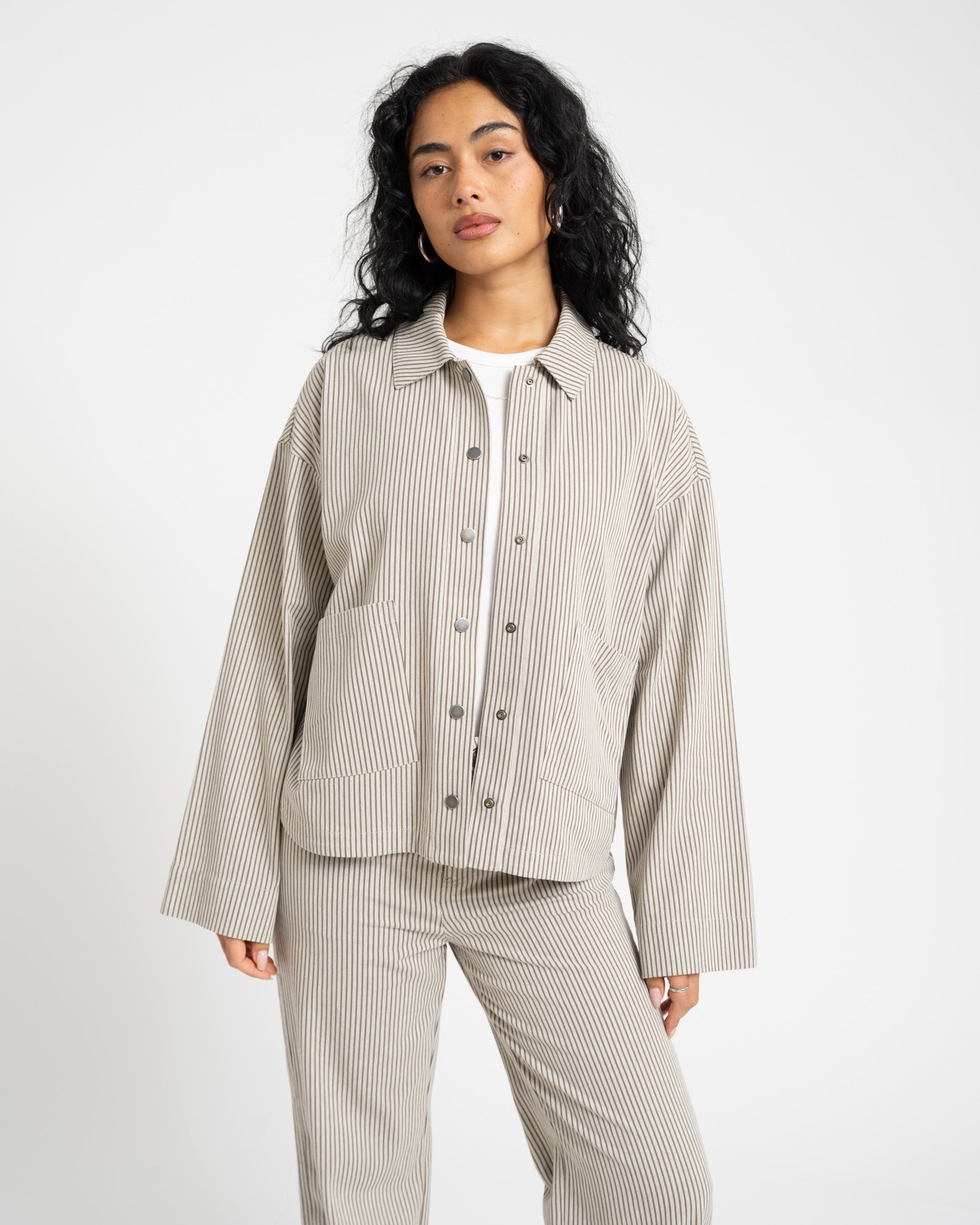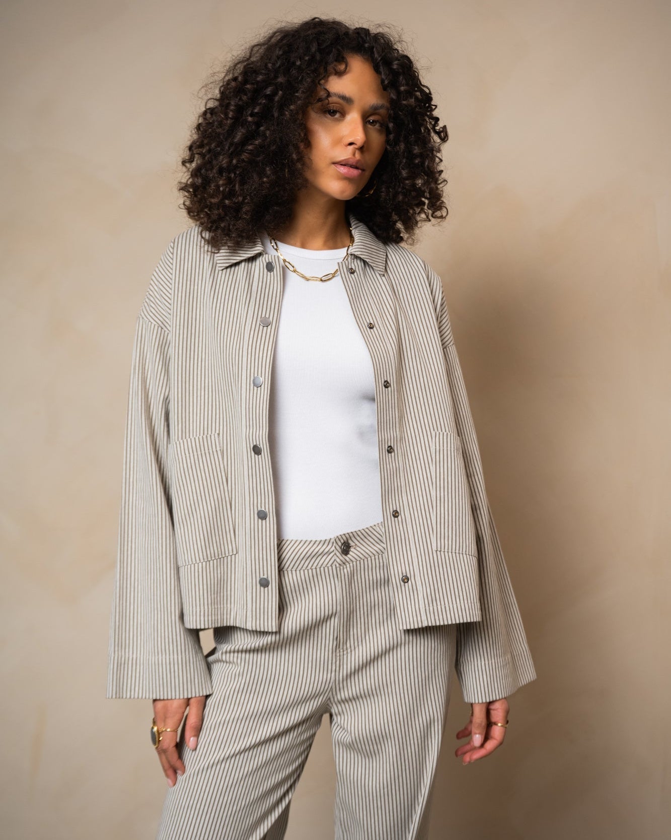 This striped jacket has a relaxed fit and a subtle, classy vibe that will instantly elevate your outfit 🤍 Extra fun: there are matching pants, so you can also wear it as a complete set for an effortless co-ord look.