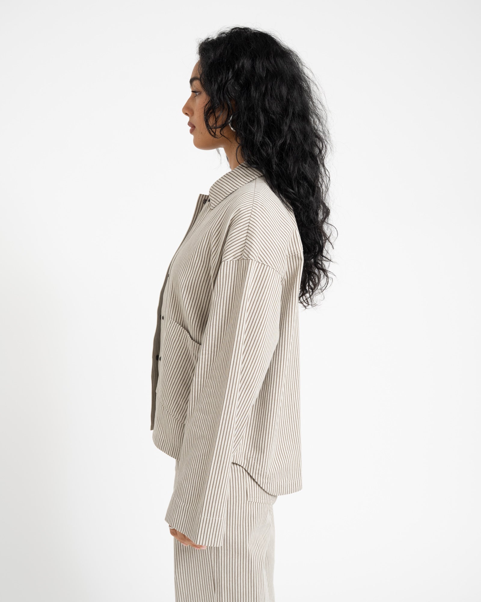 | Details | Relaxed fit, Subtle vertical stripes, Button closure at the front |