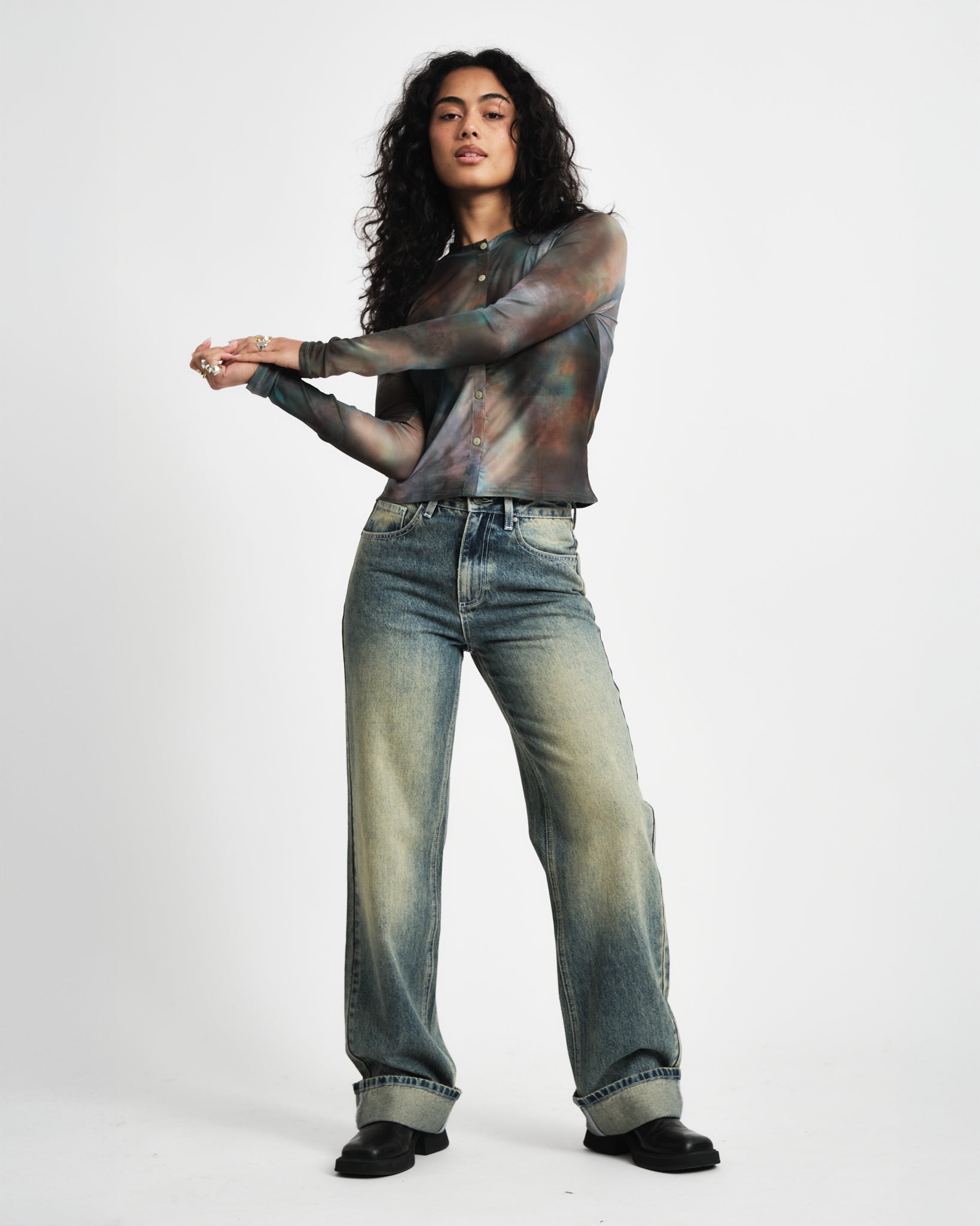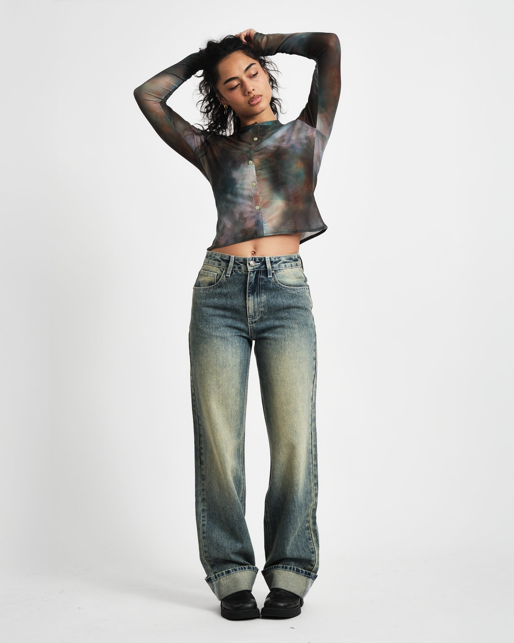 TILTIL Mesh Buttoned Longsleeve mix green
