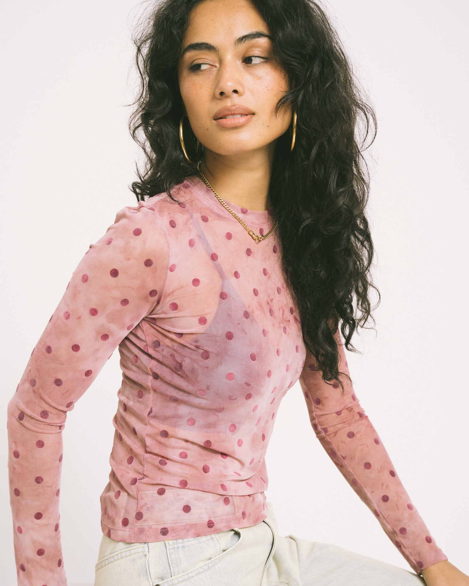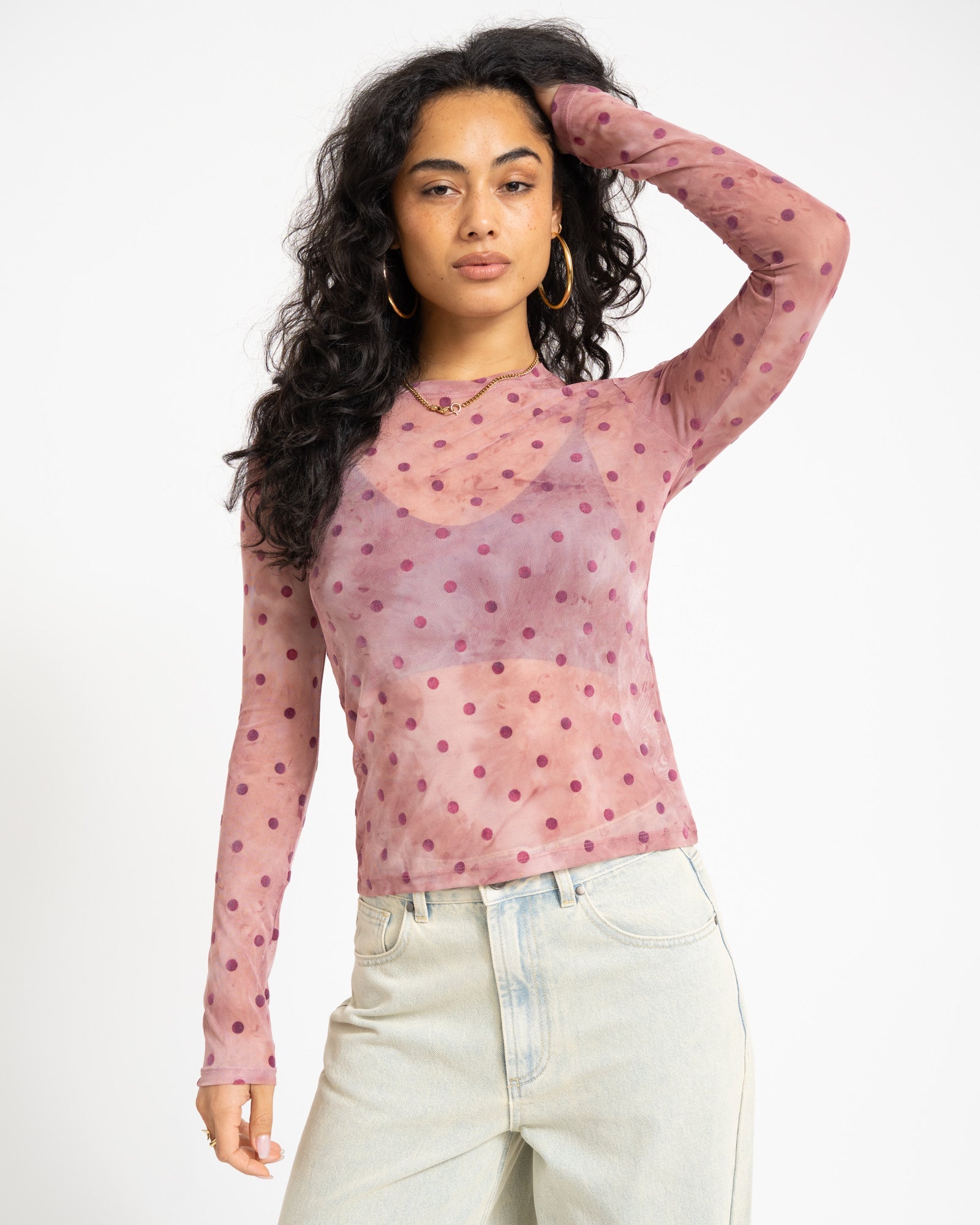 TILTIL Mesh Polkadot Longsleeve Dustypink