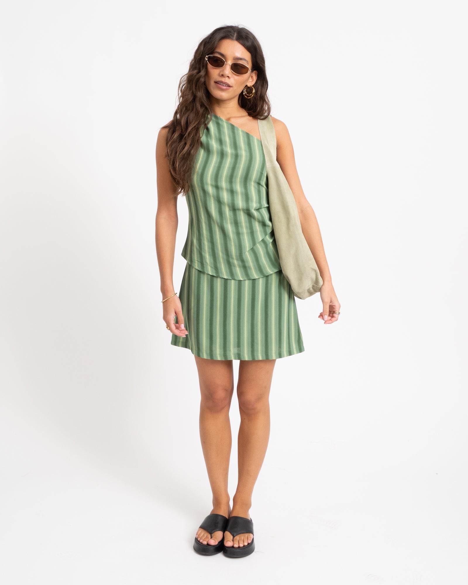 The TILTIL Meya Striped Skirt in green can be worn on its own or as part of a set. The striped skirt has a flattering fit and a fresh, summery look.