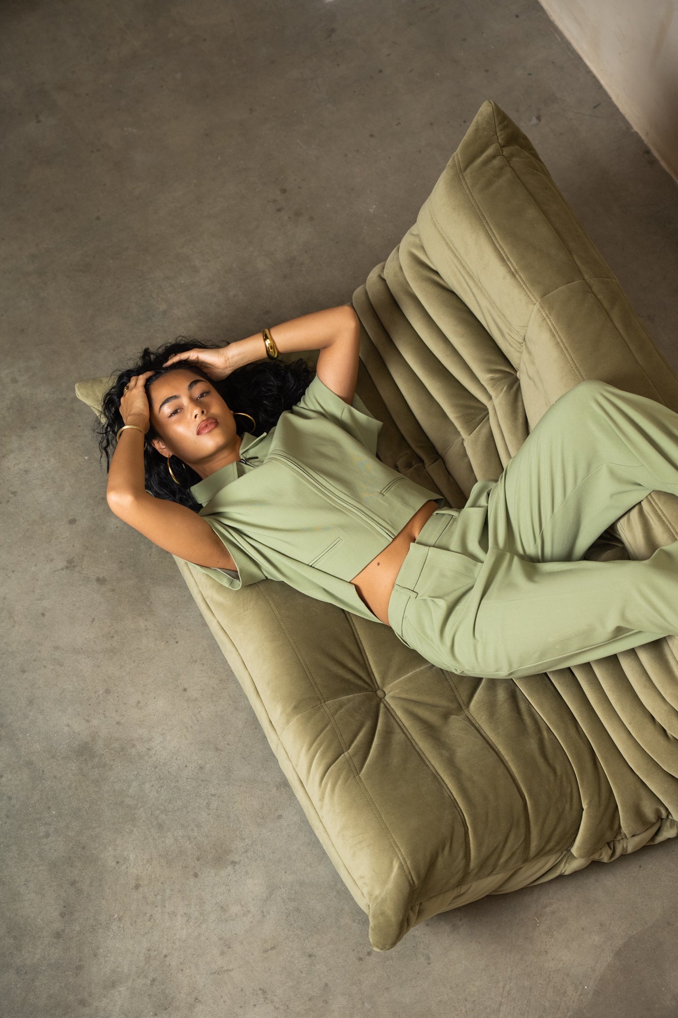 The Mida Shortsleeve Zipper Jacket is a modern twist on the classic jacket. The short sleeves, clean lines, and zipper closure give this piece a contemporary look. Wear it as a statement piece or pair it with the matching trousers for a strong, effortless look.