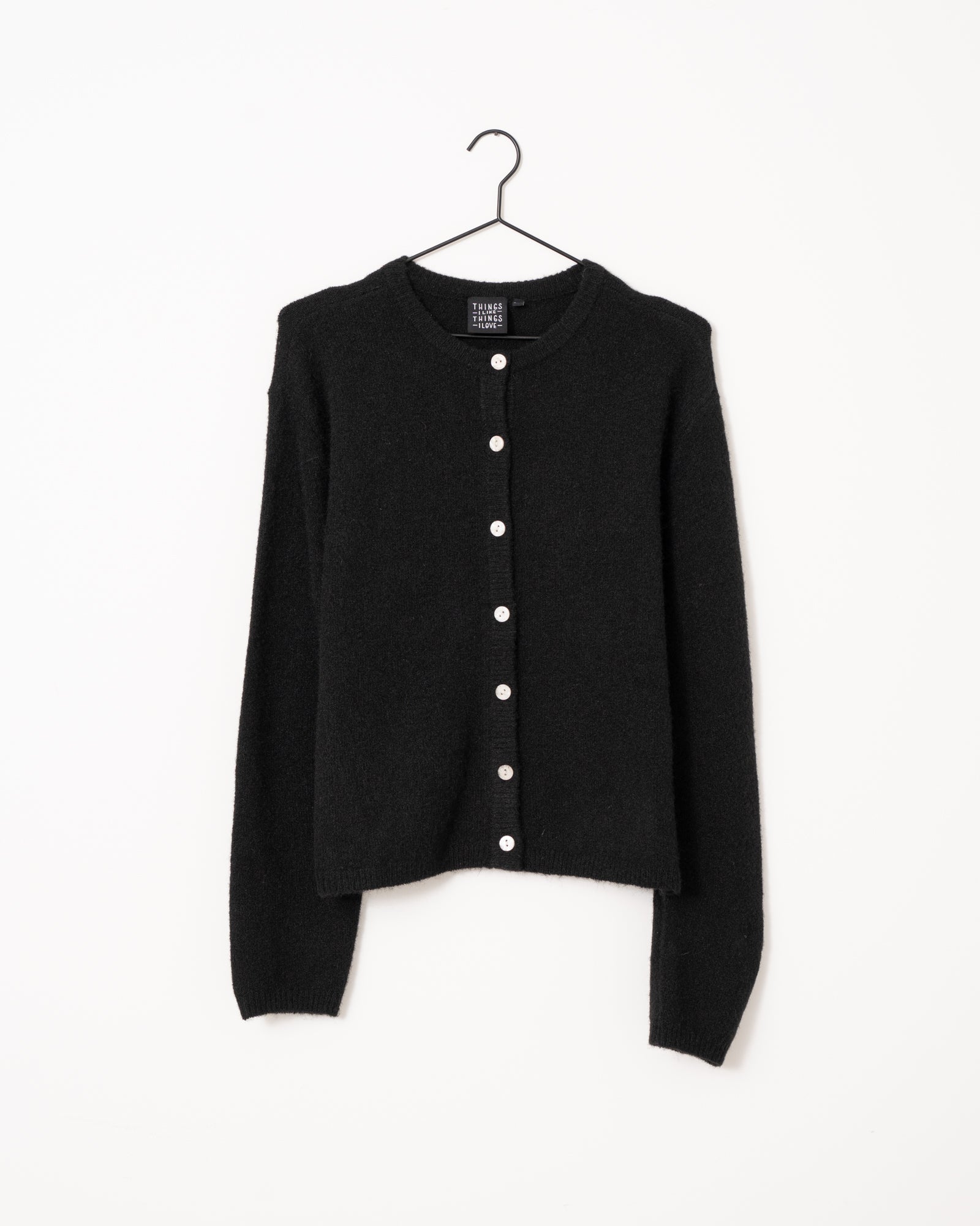 The Mona Cardigan is a super soft must-have for colder days. Made in a black fabric with a white button closure, so you can wear it open or closed.