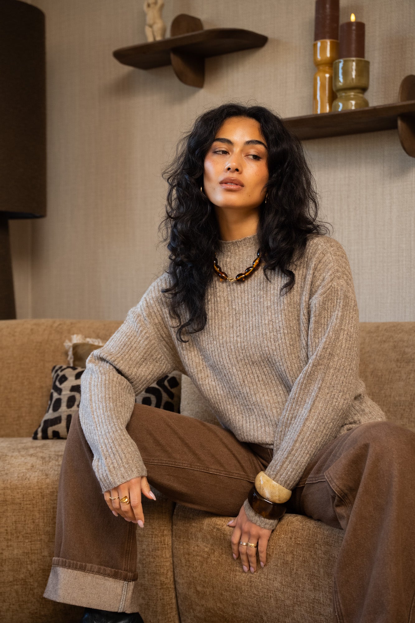 Soft, rib knitted sweater with a relaxed fit. Slightly oversized and wonderfully warm. Perfect for autumn and winter. Easy to combine with all your favourite trousers or skirts.