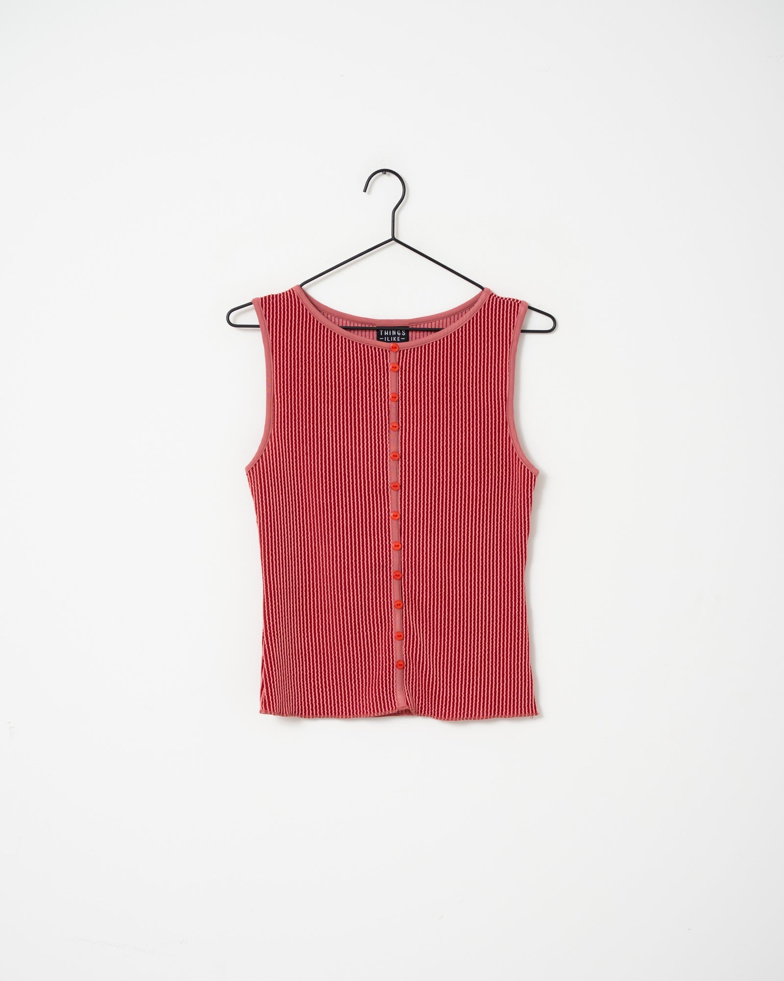 | Details | Rib fabric, Sleeveless, Front button closure |