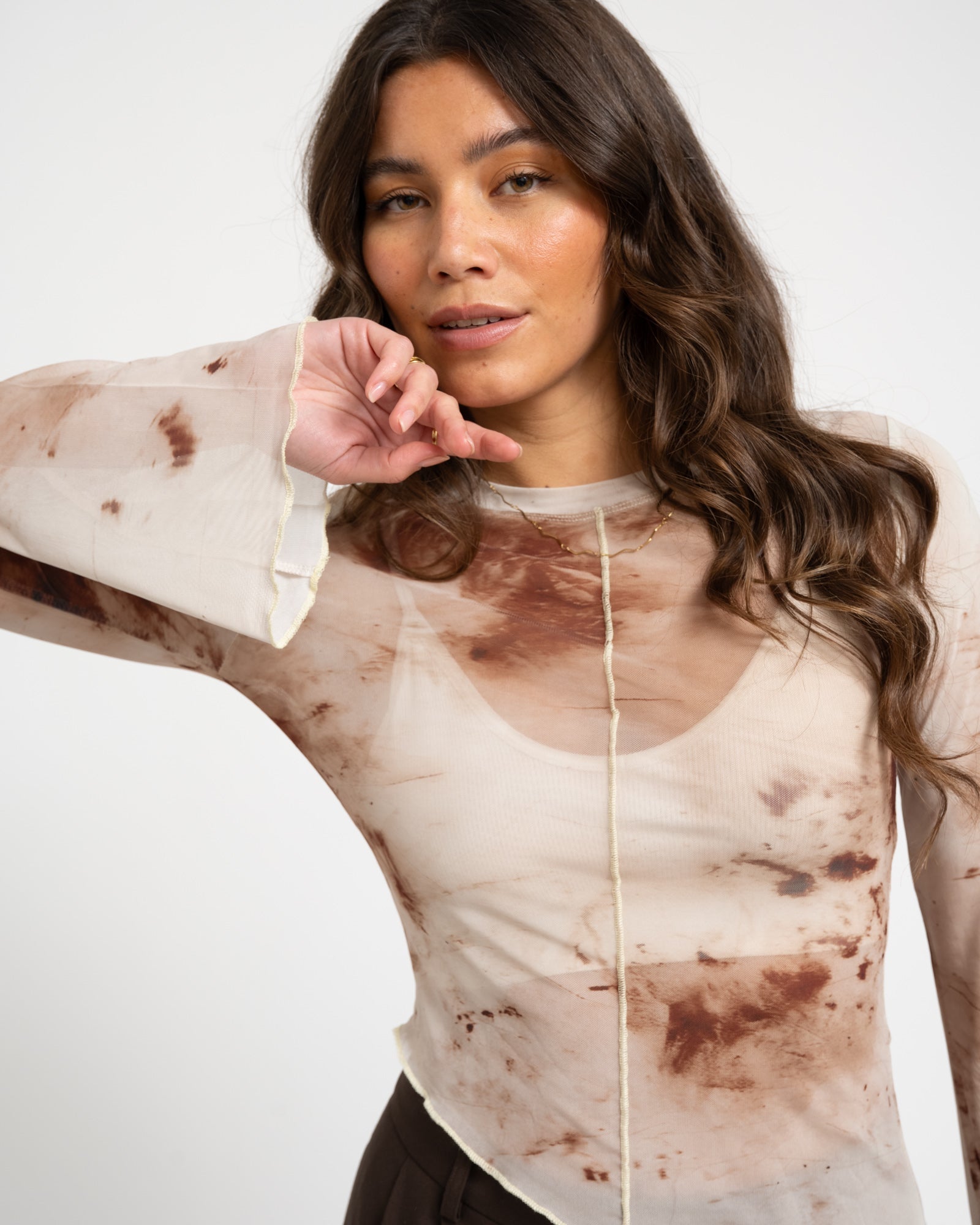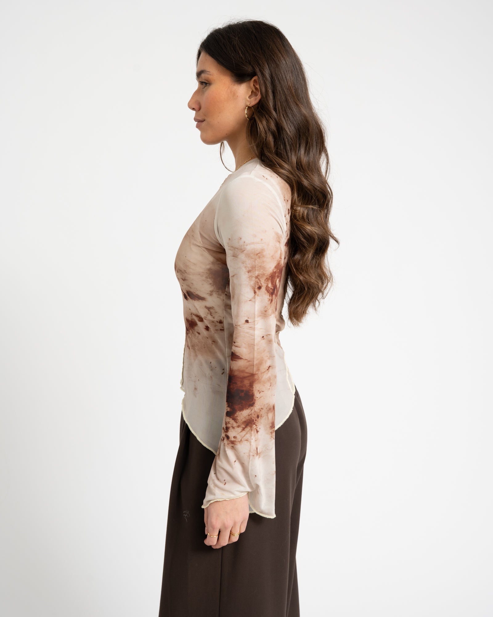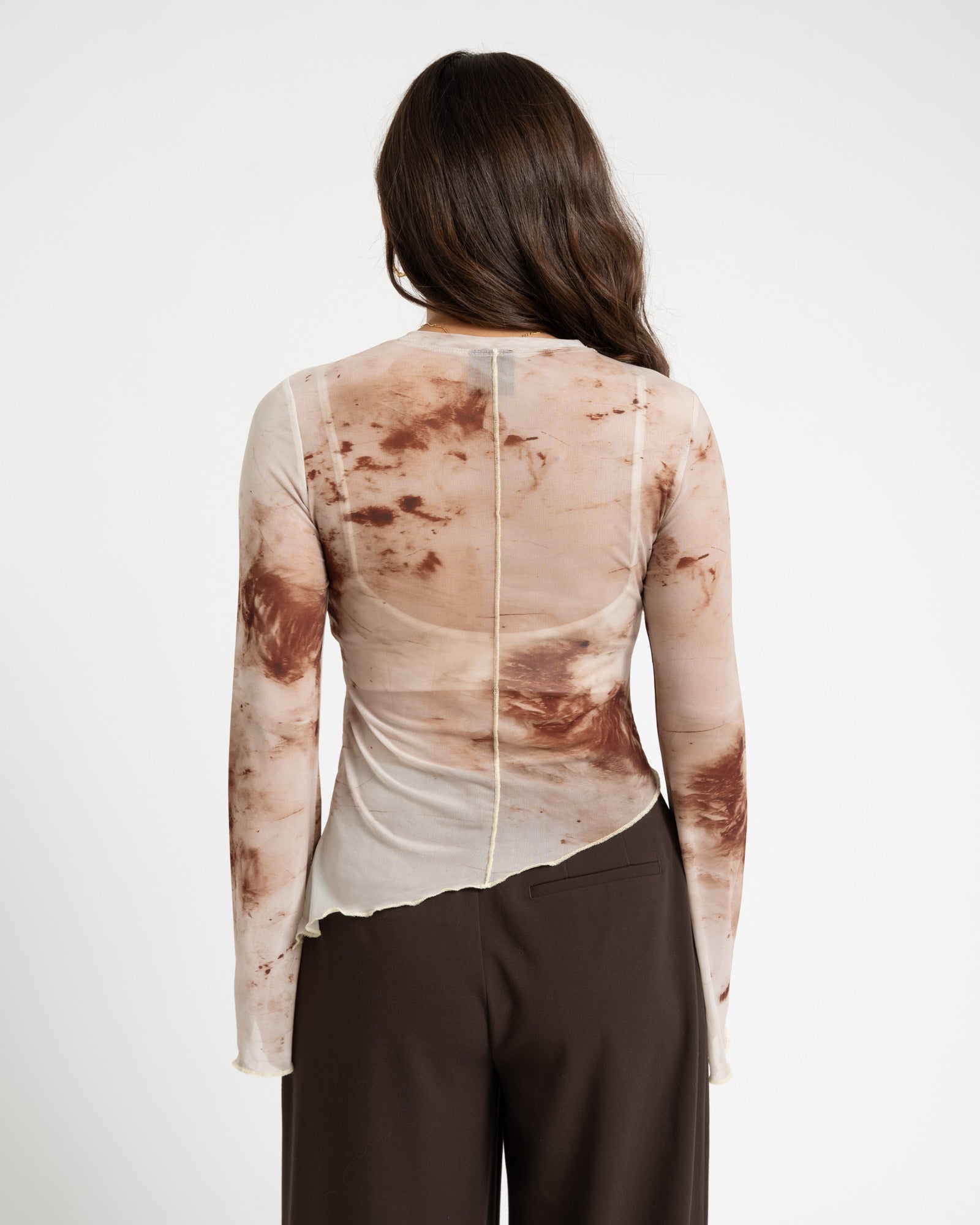 | Details | Soft tie-dye print, Long sleeves, Mesh, Asymmetrical |