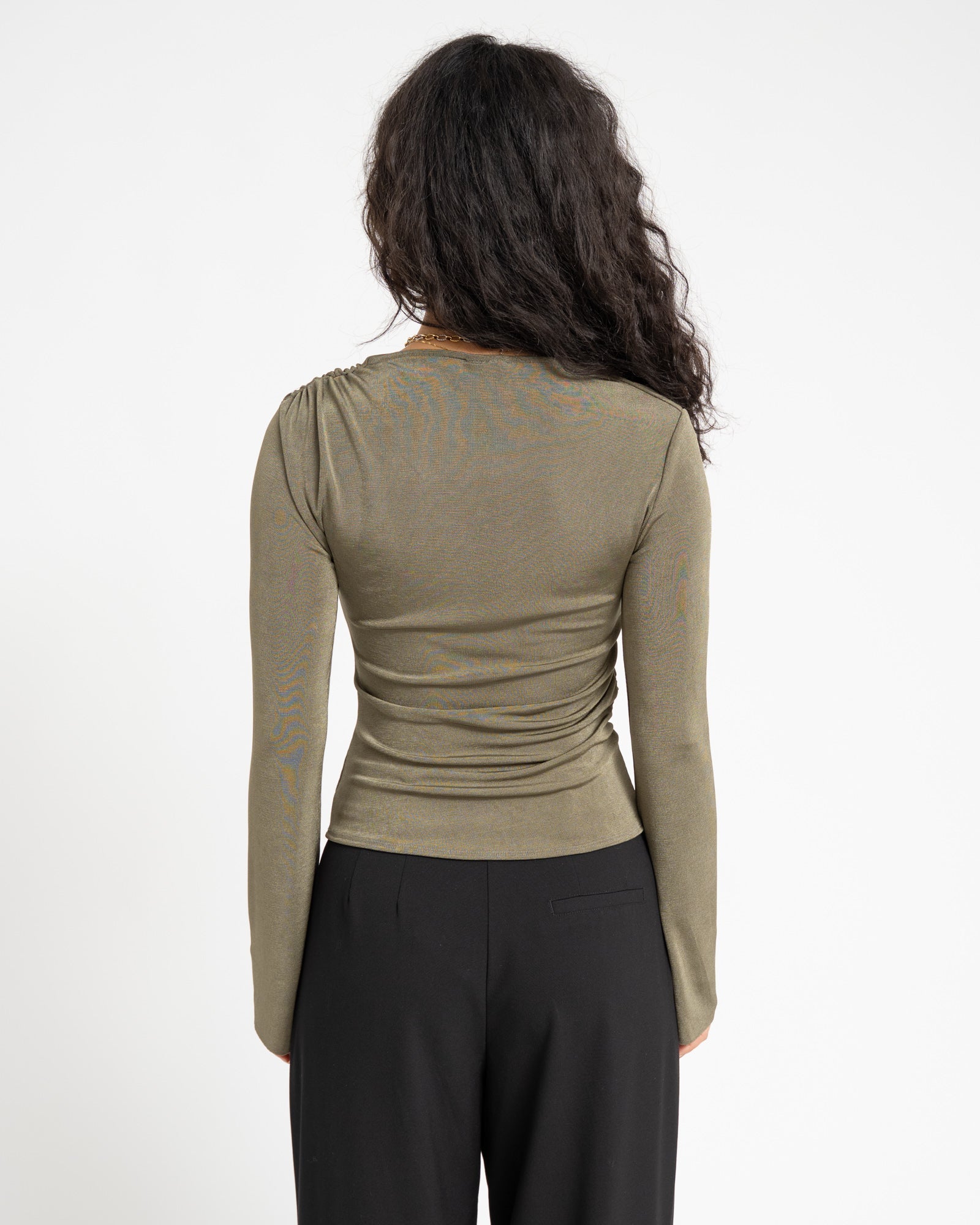 The Yola Longsleeve is simple, but never basic. The subtle shimmer and side ruffles give this top that little something extra. With its playful flared sleeves, it's the perfect go-to for ADE nights.