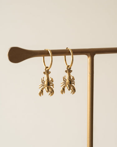 Gold earring with lobster pendant. Perfect for lovers of the sea or the Cancer zodiac sign!