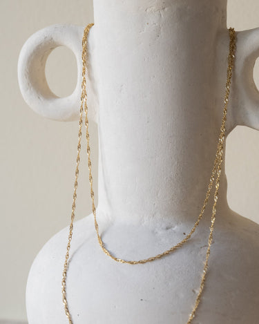Thin gold chain with twisted links. Fun to combine with our other necklaces to create layers in different lengths!
