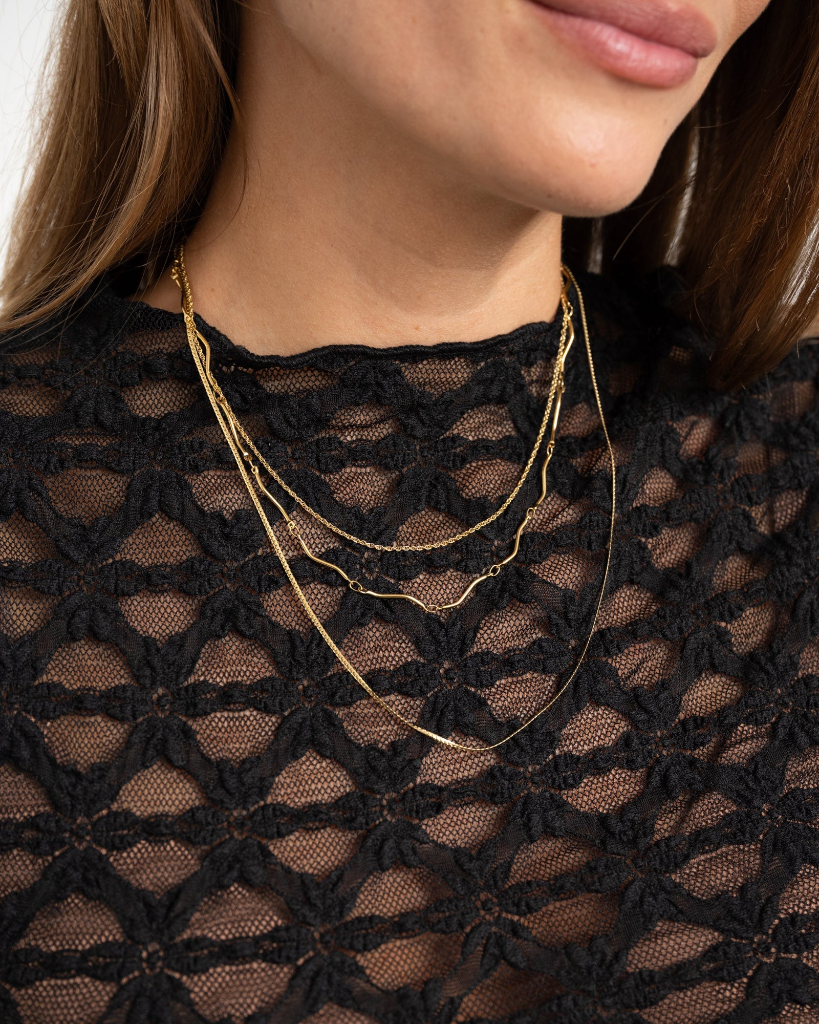 Thin gold chain with twisted links. Fun to combine with our other necklaces to create layers in different lengths!