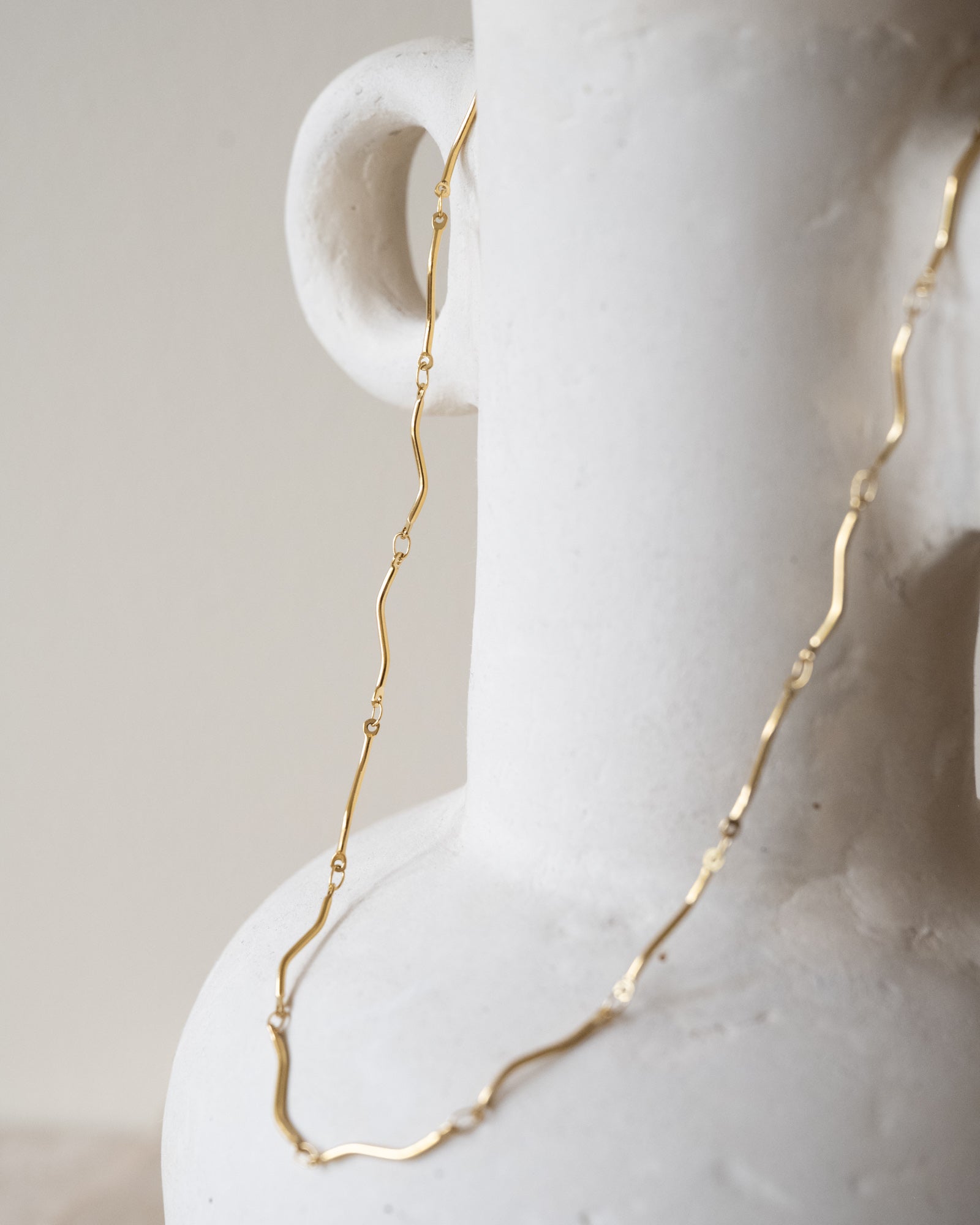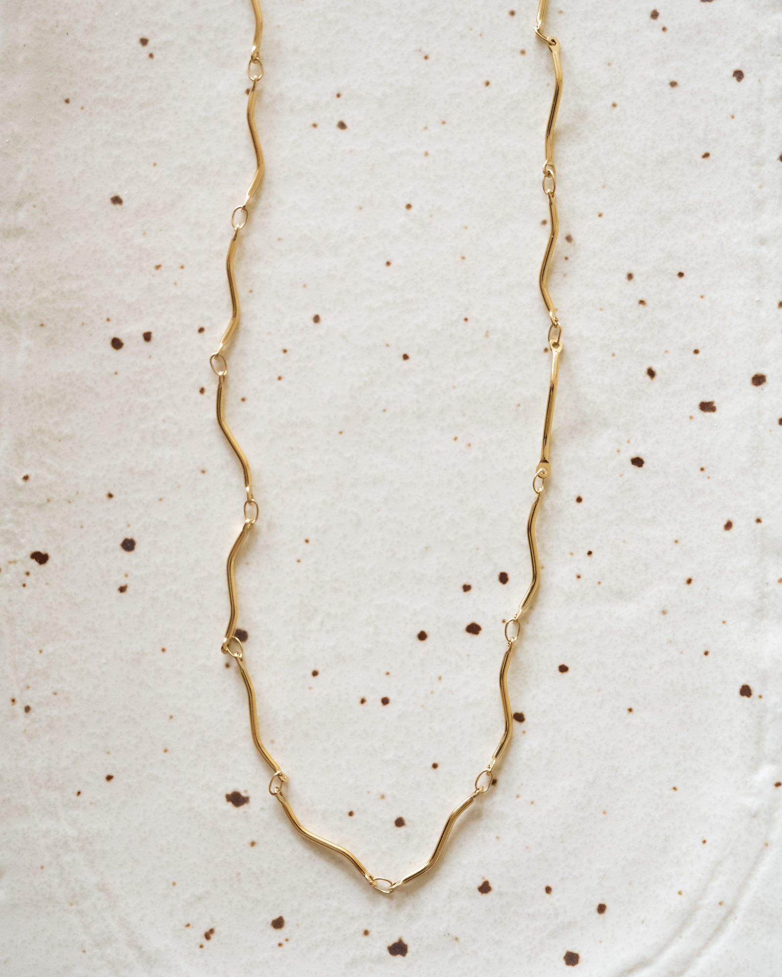Gold chain with wavy links! Fun to combine with our other necklaces to create layers in different lengths.