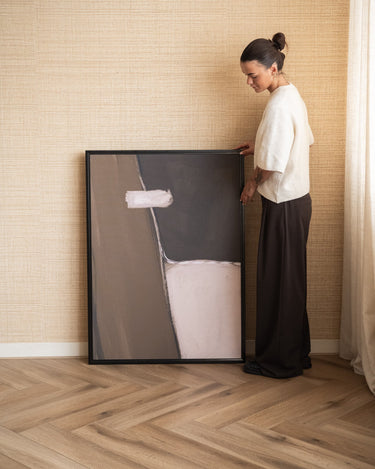 The X-Large Wall Art Abstract Chocolate brings peace and depth to your interior with its abstract shapes and warm chocolate and earth tones. Its extra-large size makes this artwork a real eye-catcher on the wall. Perfect above the sofa, a dresser, or in a spacious hallway. Timeless, modern, and easy to combine with various interior styles.