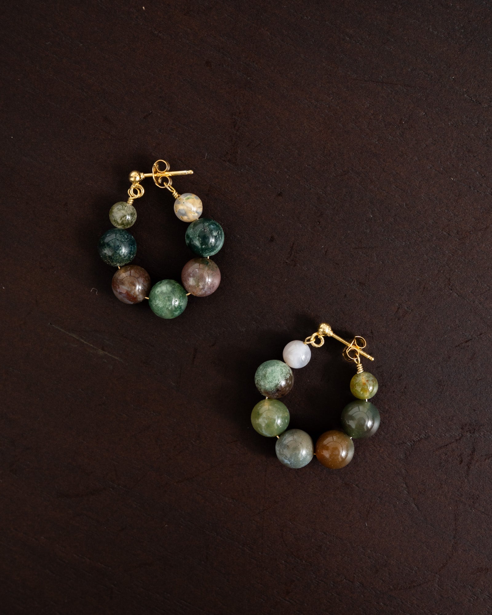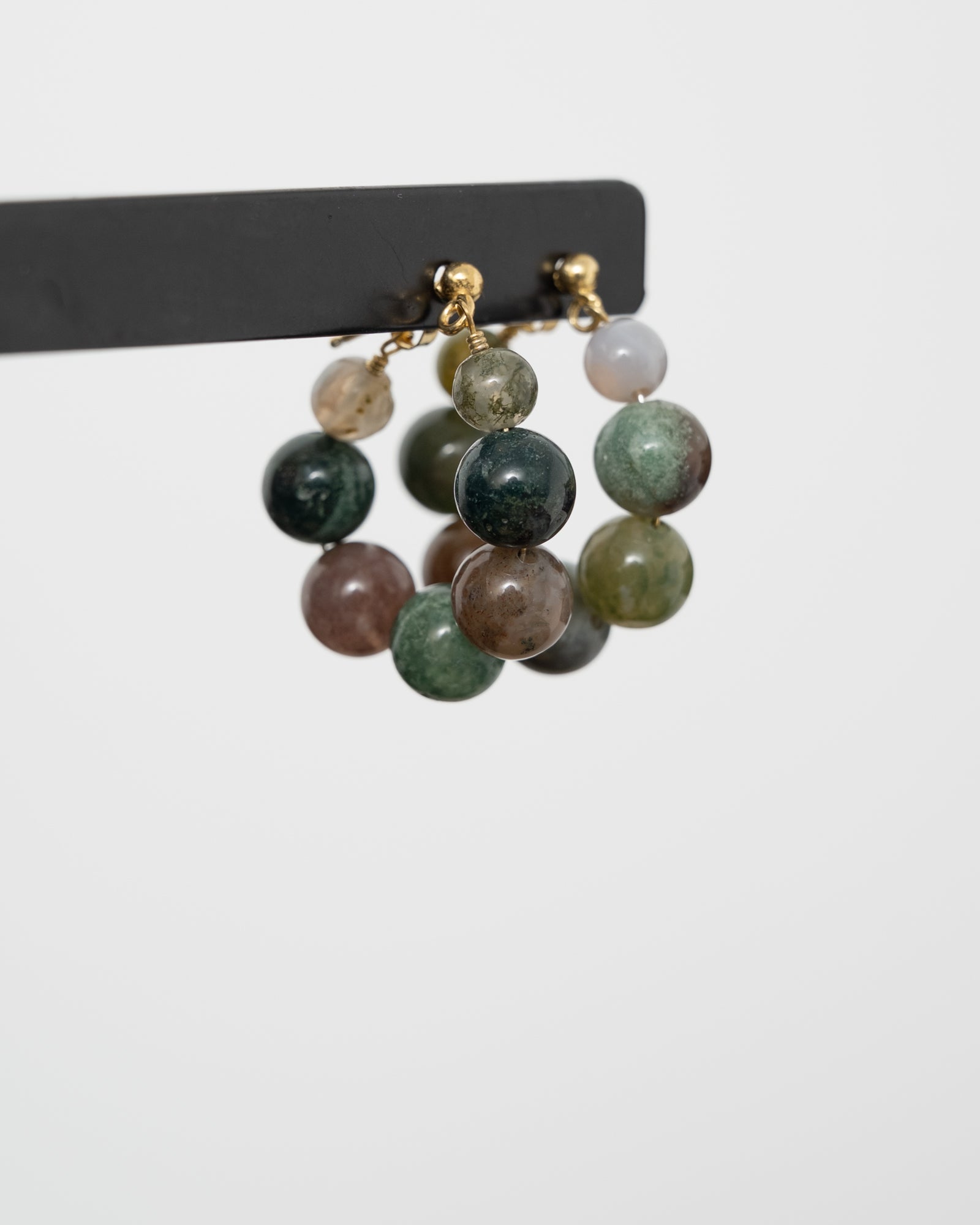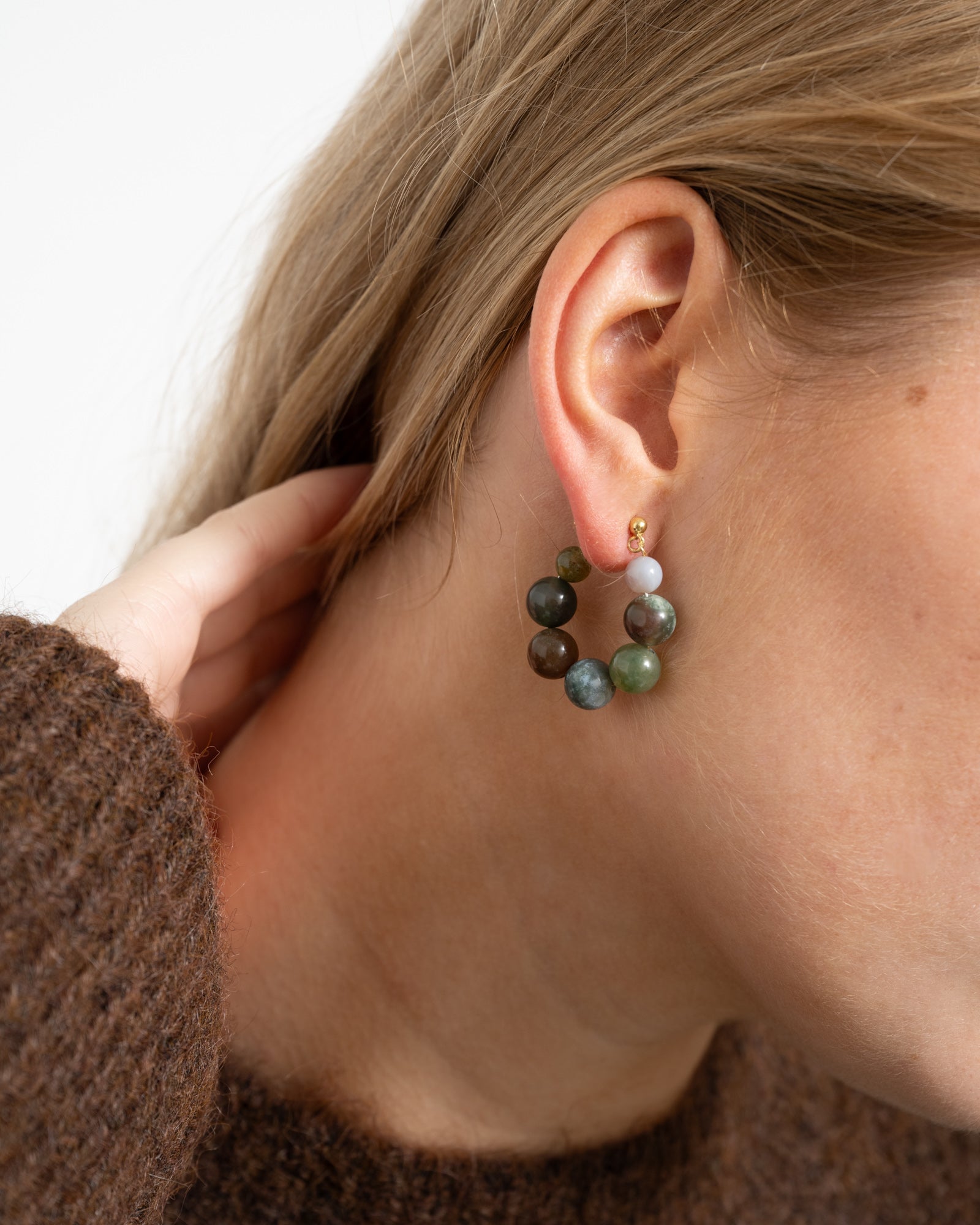 Statement earring with several large green stones.