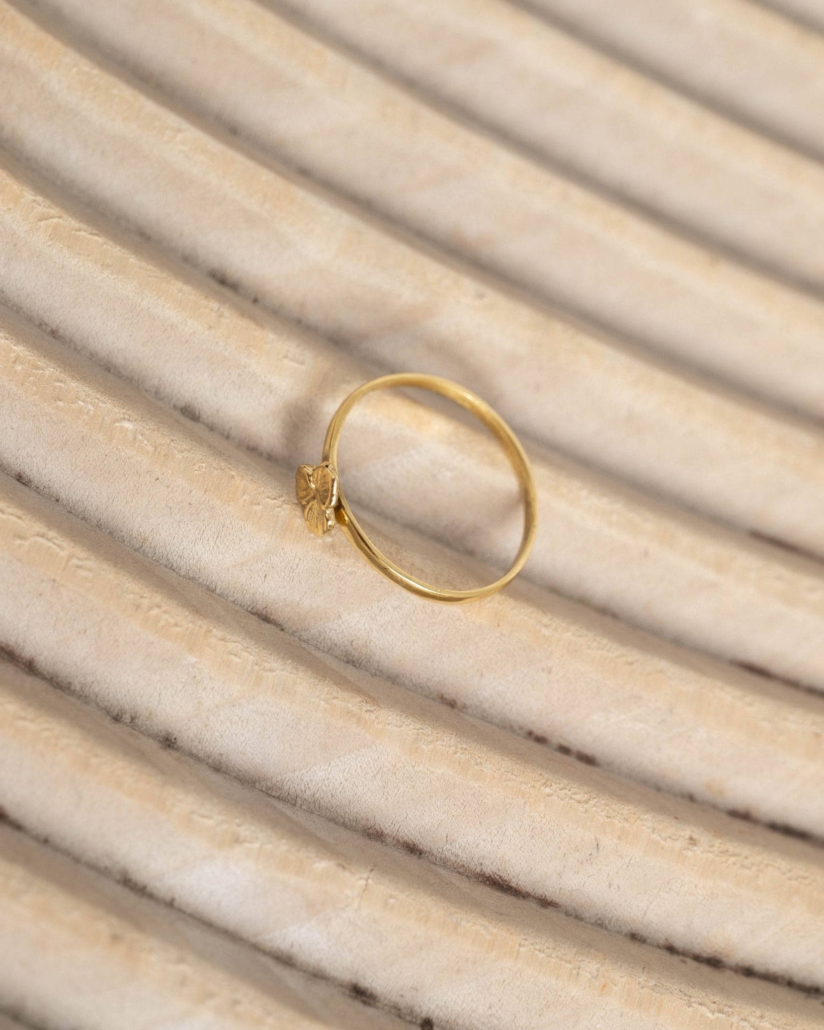 Goudkleurige ring met een subtiel klavertje detail. Een fijne, minimalistische ring met een betekenisvolle touch. ✨