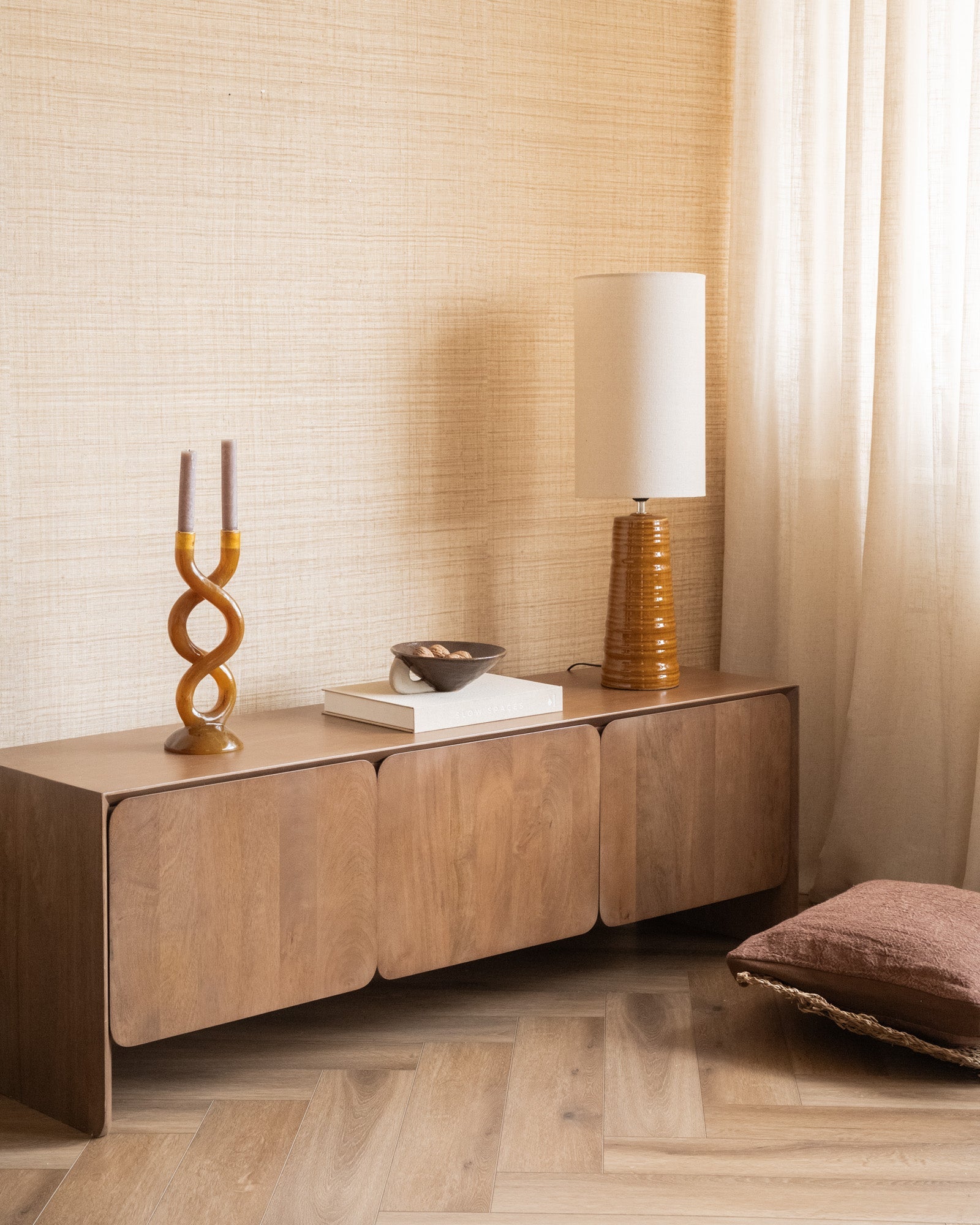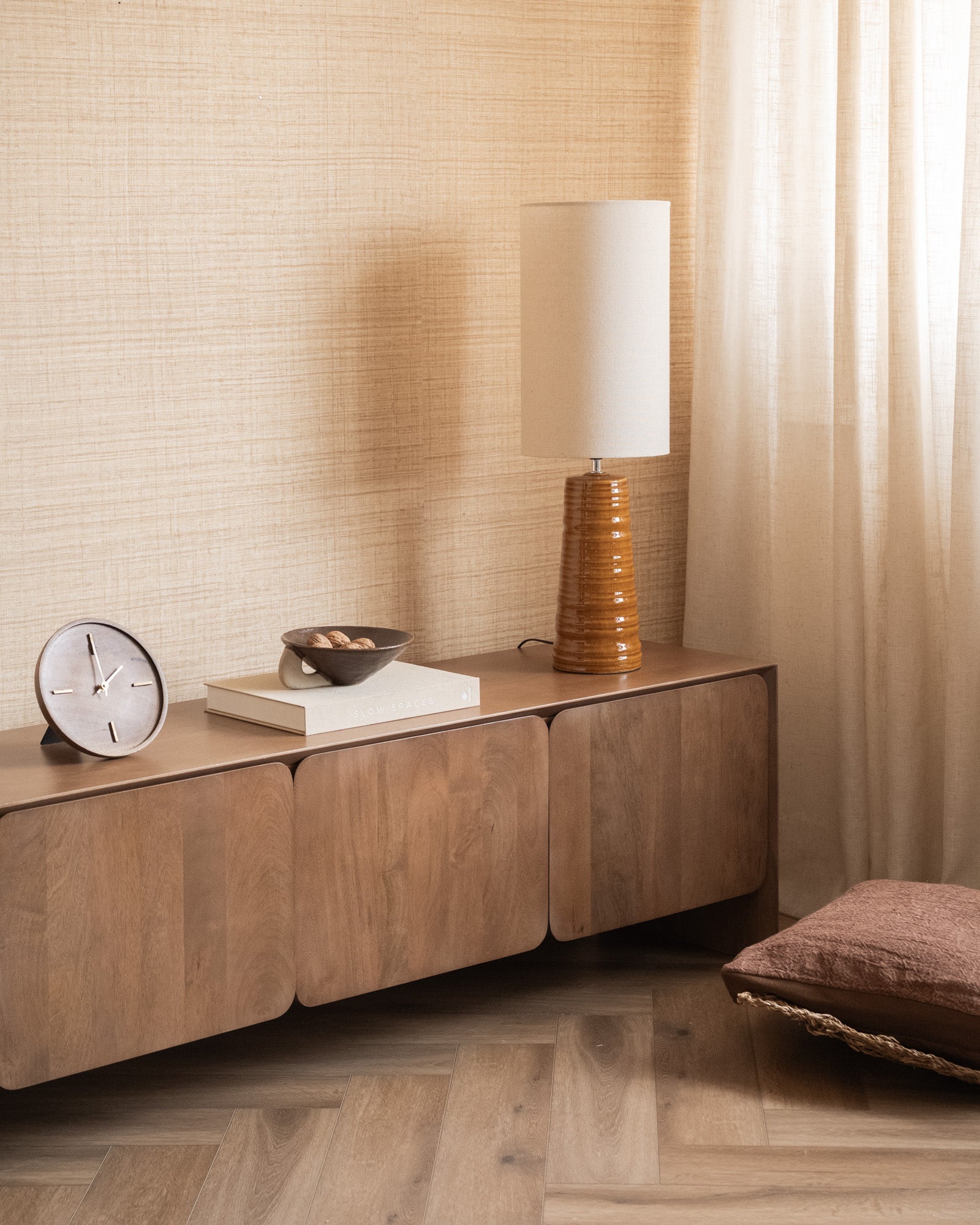 Breng warmte in je interieur met de Large Table Lamp Tom Mustard. De glanzende keramieken voet in een diepe mosterdtint en de lichte kap zorgen voor een zachte, sfeervolle gloed. Perfect voor op een dressoir, console of nachtkastje.