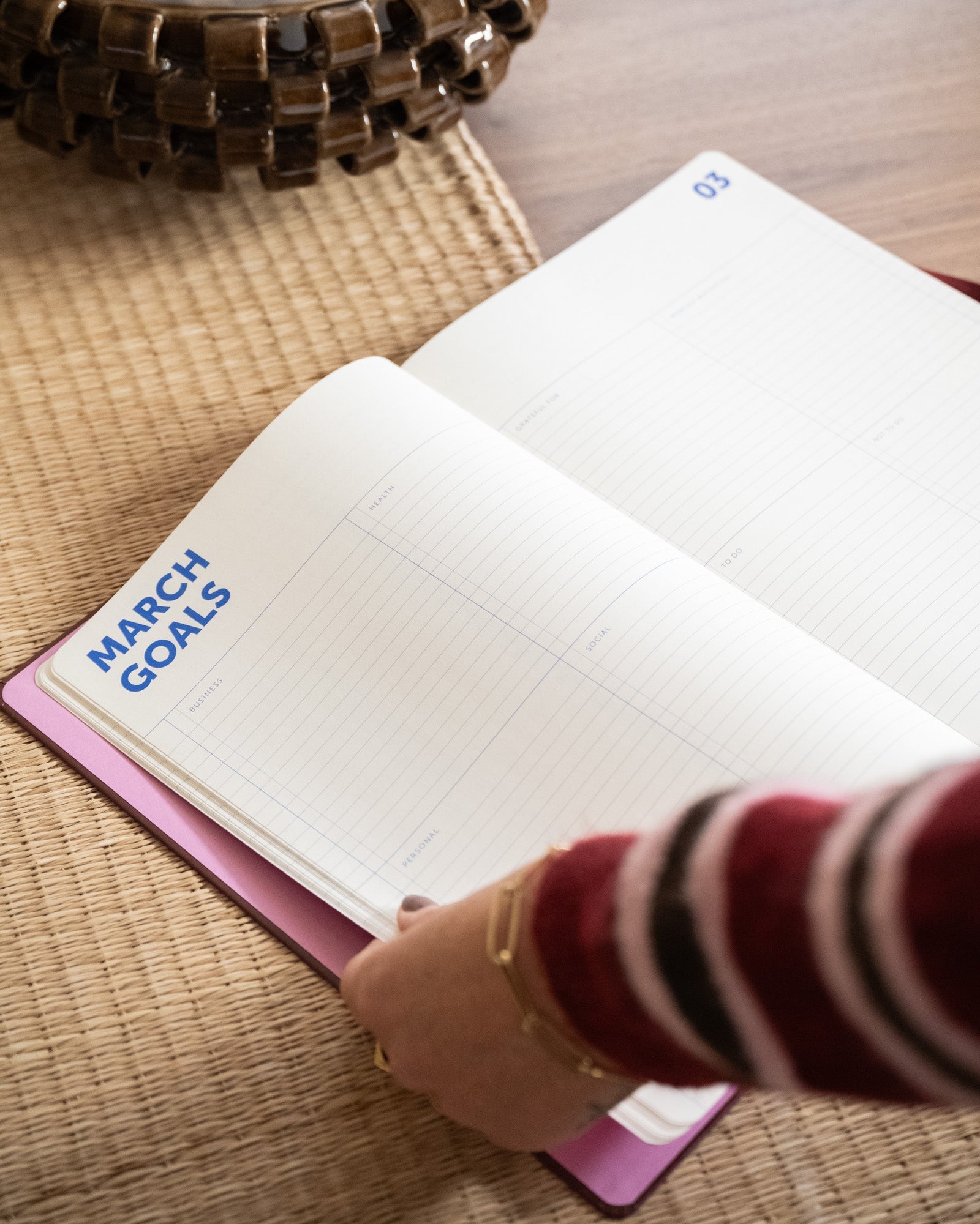 | Details | A4 formaat (21 x 29,5 cm), Gewicht: 800 gram, Week- & maandplanners met tijden, Ruimte voor notities, doelen & to-do’s, Hardcover, elastiek & leeslint |